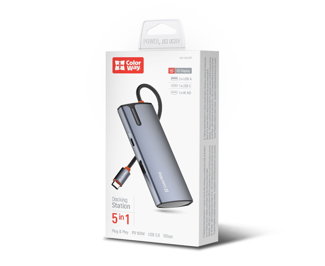 Порт-репликатор ColorWay Docking Station USB-C 5-в-1 Type C PD 100W/USB3.0х3/HDMI 4К (CW-HUB01)