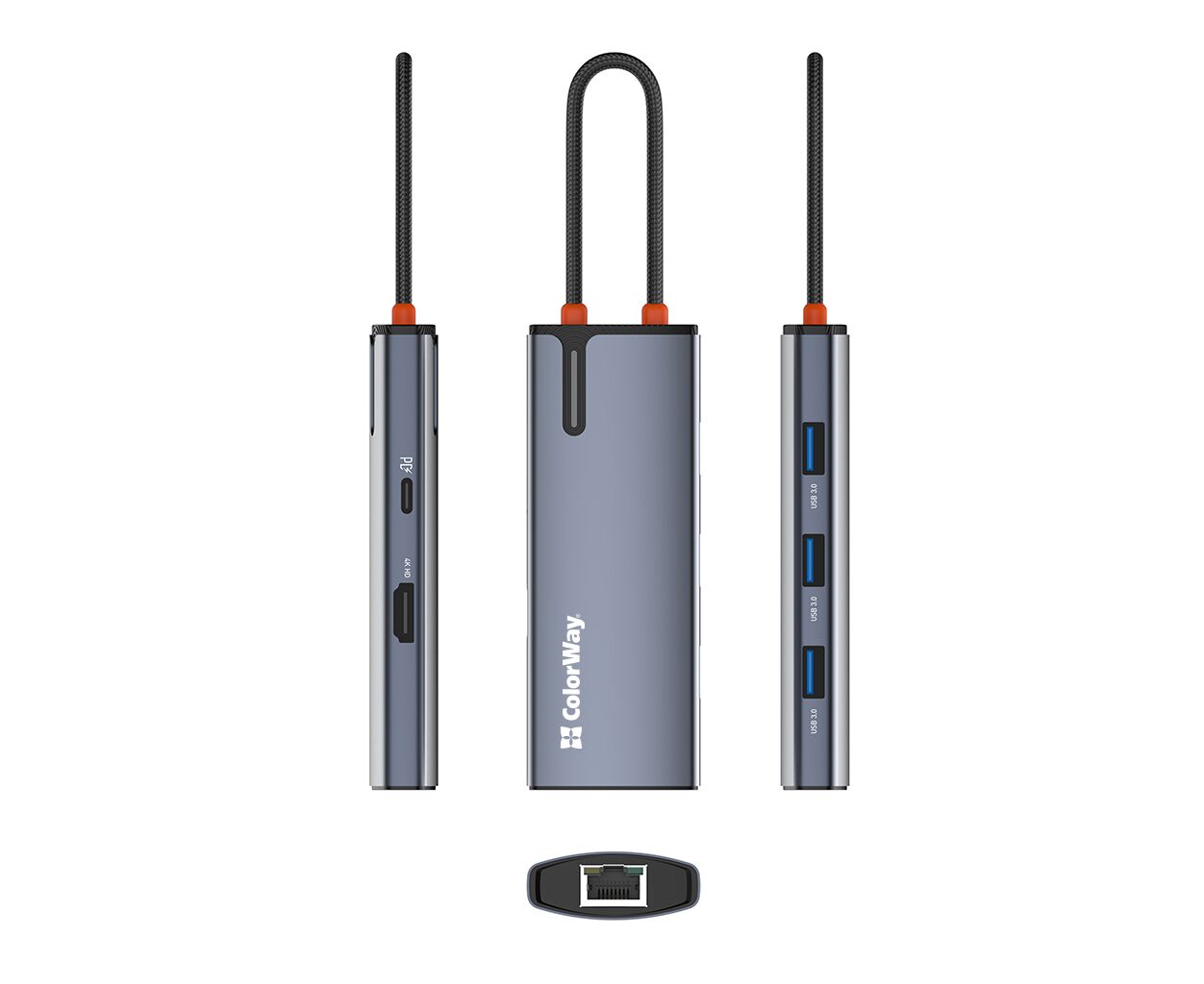 Порт-репликатор ColorWay Docking Station USB-C 6-в-1 Type C PD 100W/USB3.0х3/HDMI 4К/RJ45 (CW-HUB02)