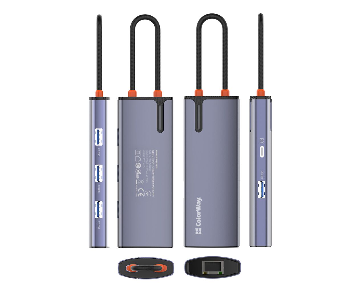 Порт-репликатор ColorWay Docking Station USB-C 6-в-1 Type C PD 100W/USB3.0х3/USB2.0/RJ45 (CW-HUB03)