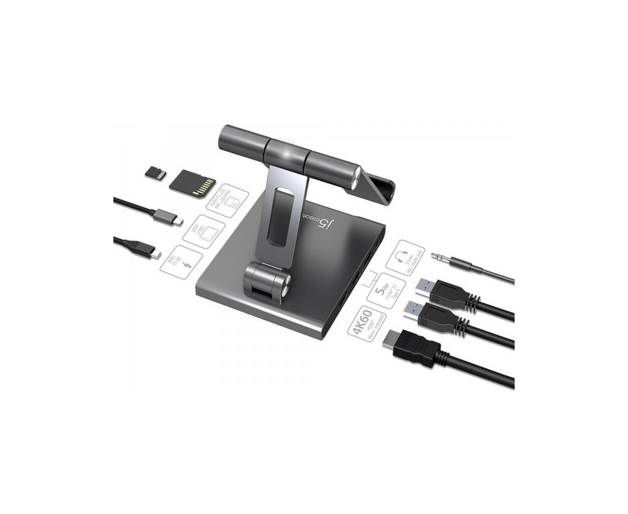 Порт-репликатор J5create Dock-Station Ipad USB-C 8-in-1 (HDMI/PD/картридер/USB-A/USB-C/Audio) (JTS224-N)