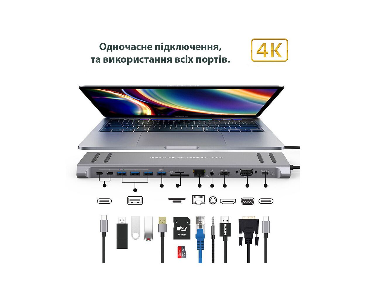 Порт-репликатор XoKo 14-in-1 Dock USB-C (HDMI/VGA/USB3.0/.../USB-C PD/RJ45/..) (XK-AC1400-SL)