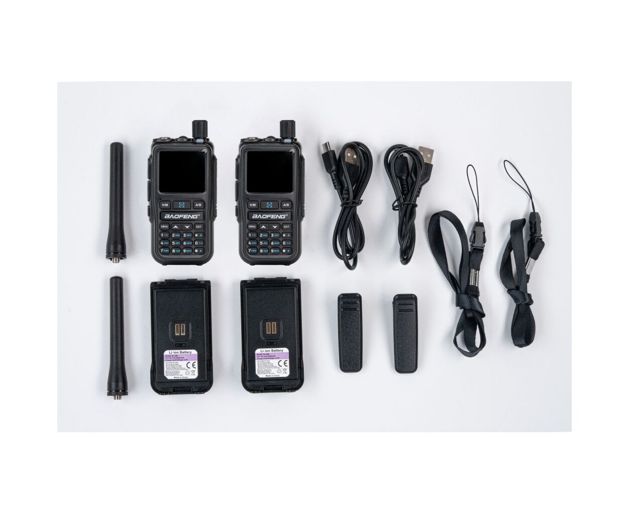 - Рация - 2 шт Зарядный кабель USB Type C - 2 шт Антенна - 2 шт Аккумулятор - 2 шт Клипса для крепления на ремень - 2 шт Шнурок на руку - 2 шт Инструкция (англ) - 1 шт