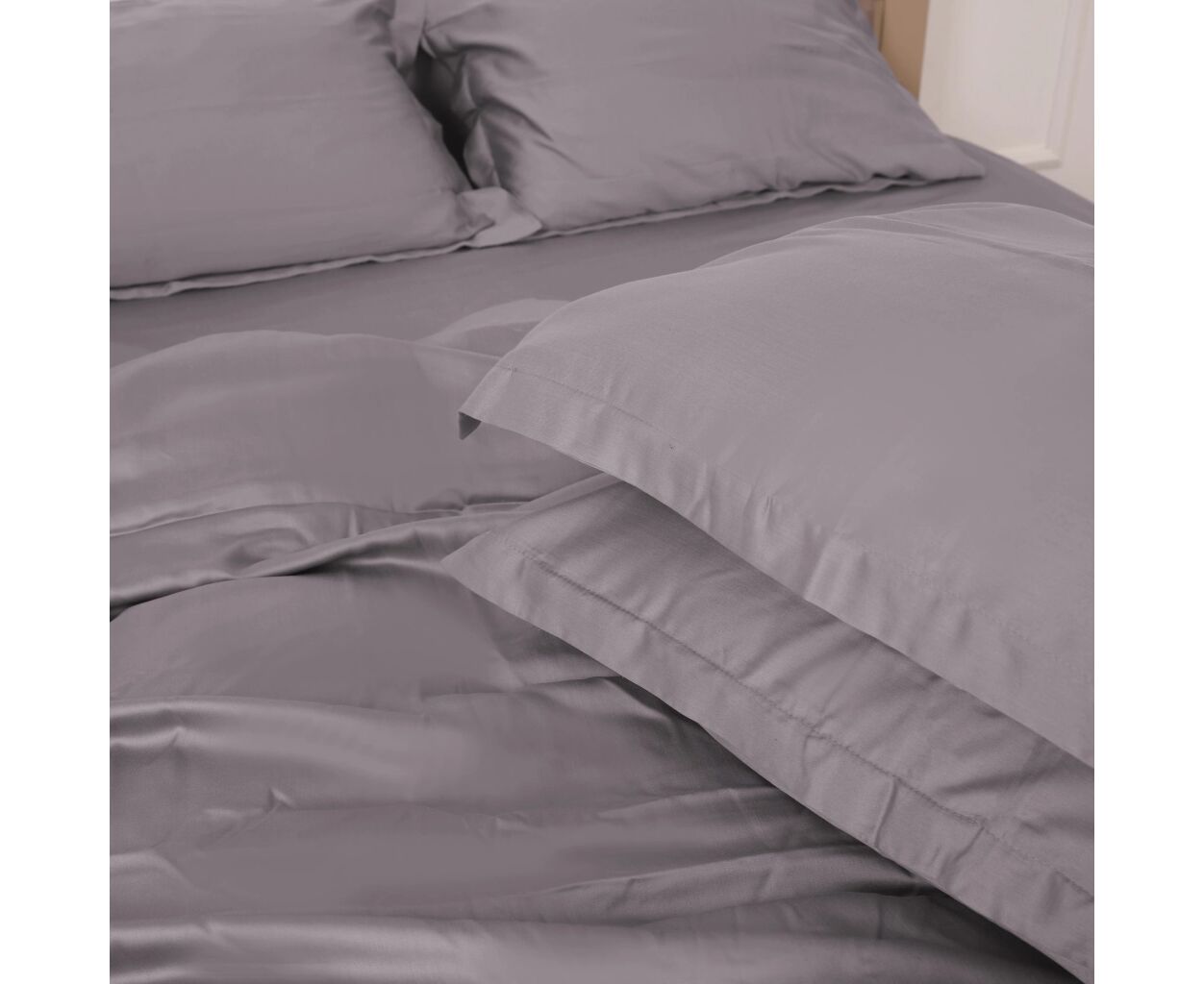 полуторный евро, Простынь - 150 x 220 см, Пододеяльник - 160 x 220 см, Наволочка - 50 х 70 см, Тенсел, 1 шт., 2 шт., однотонные модели, фирменная упаковка, на молнии, серый
