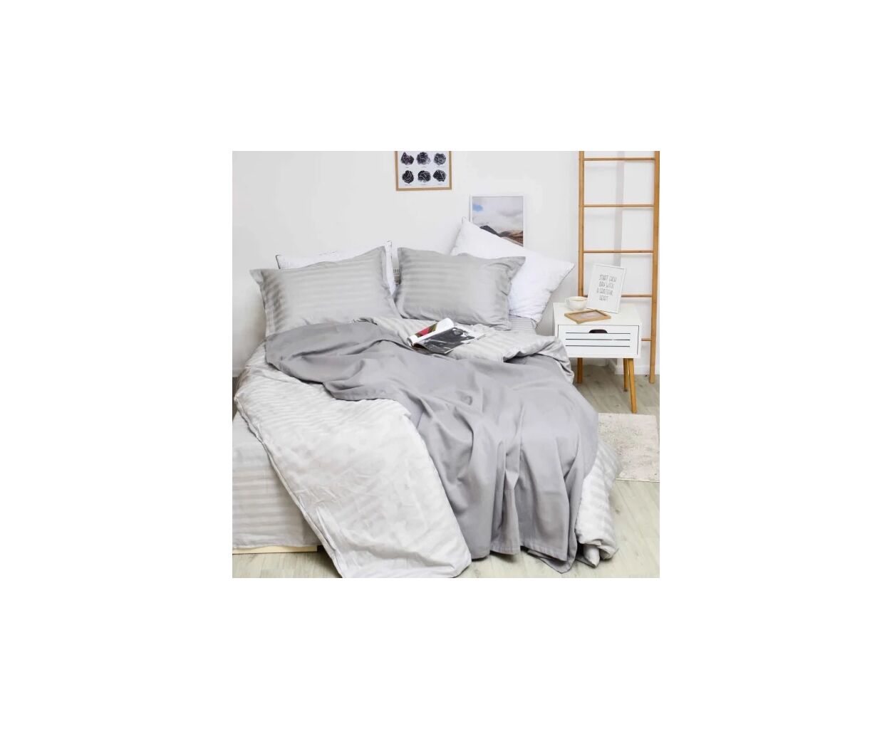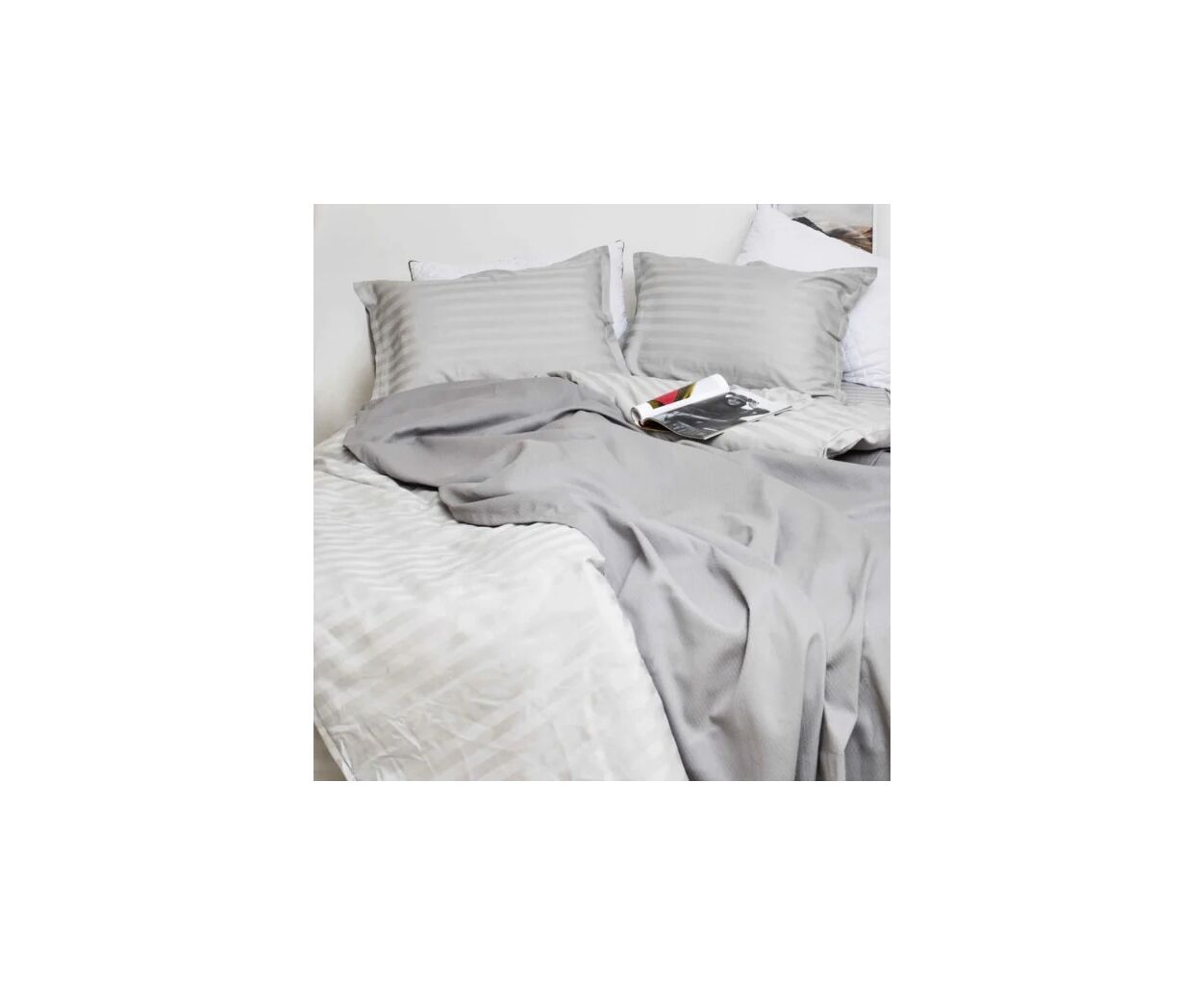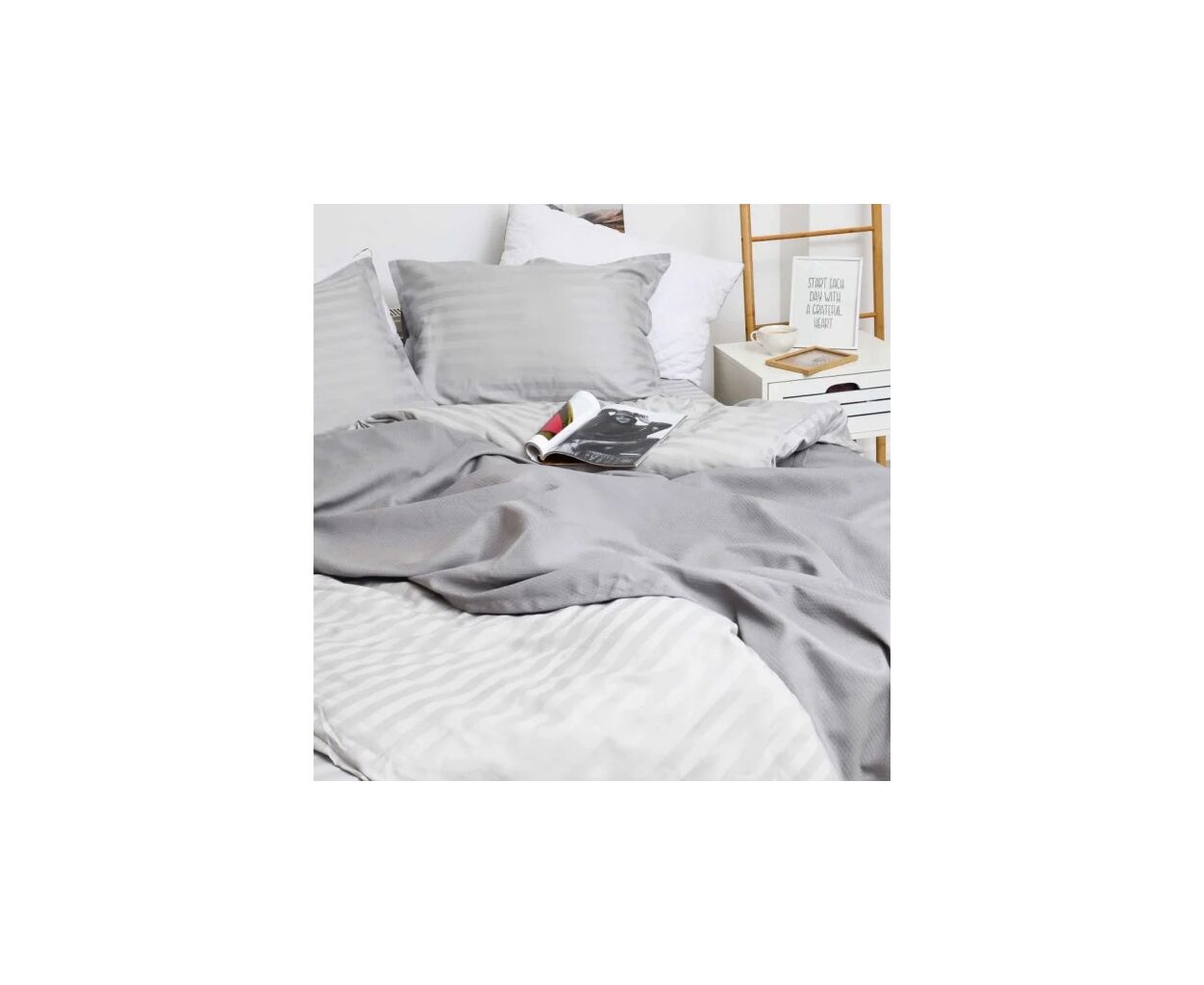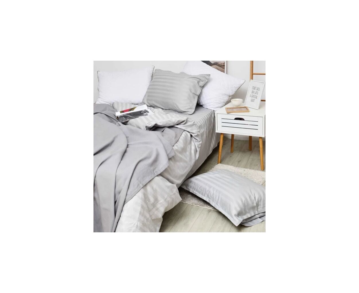 двухспальный, Простынь - 200 x 220 см, Пододеяльник - 175 х 210 см, Наволочка - 50 х 70 см, сатин страйп, 1 шт., 2 шт., в смужку, отжим на уровне не более 600 оборотов в минуту, на молнии, серый