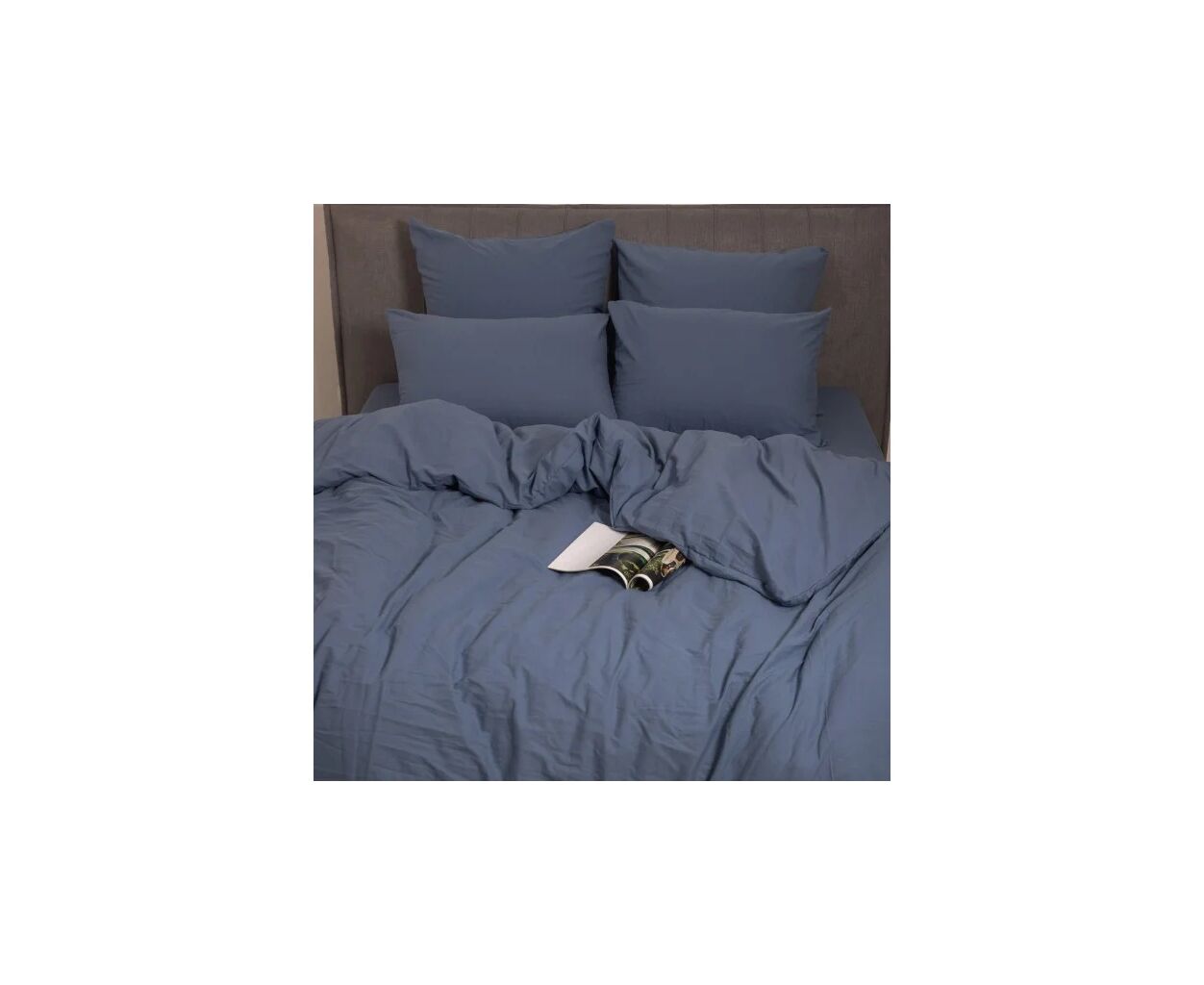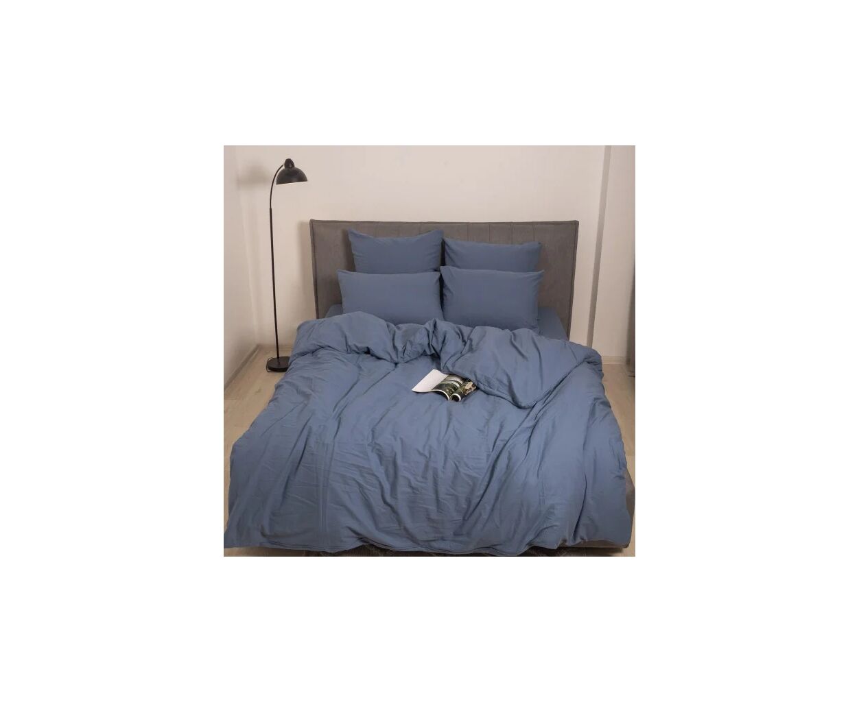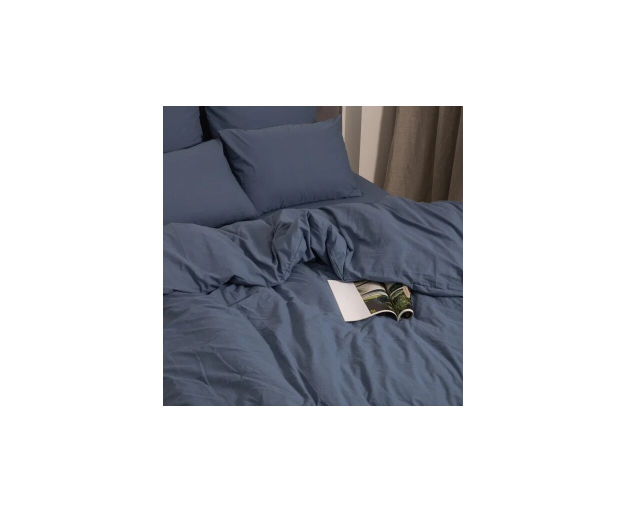 евро, Простынь - 240 х 260 см, Пододеяльник - 200 x 220 см, Наволочка - 50 х 70 см, вареный хлопок, 1 шт., 2 шт., однотонные модели, фирменная упаковка, на молнии, синий