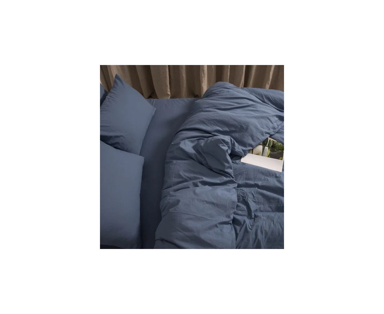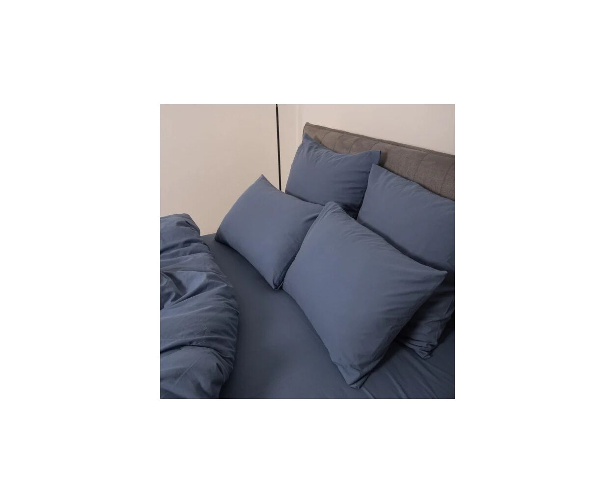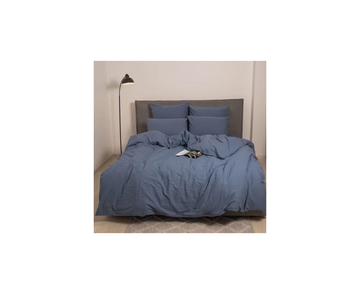 евро, Простынь - 240 х 260 см, Пододеяльник - 200 x 220 см, Наволочка - 50 х 70 см, вареный хлопок, 1 шт., 2 шт., однотонные модели, фирменная упаковка, на молнии, синий