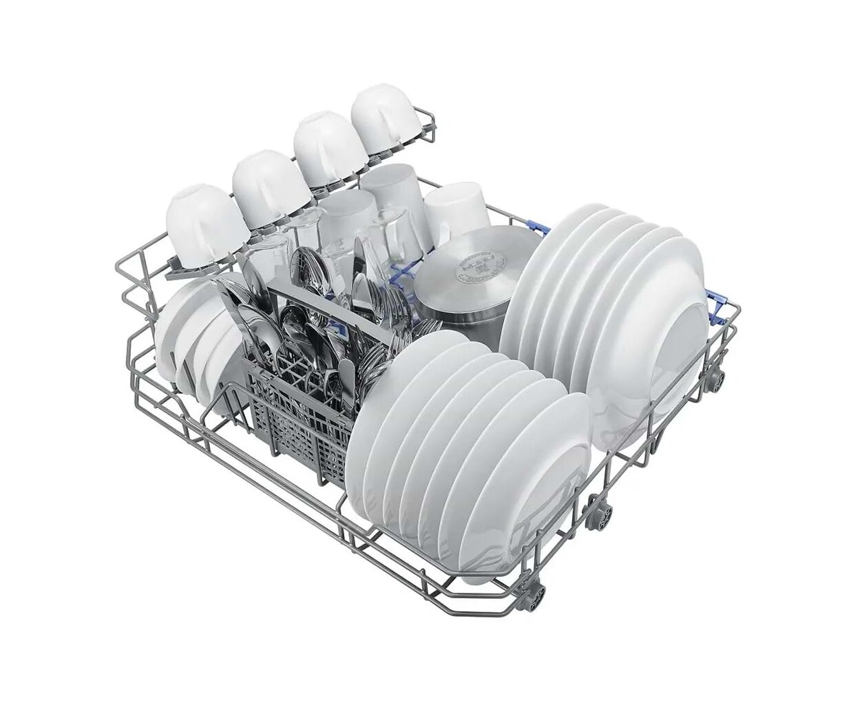 Уровень шума составляет 49 дБ, поэтому работа машины не создает дискомфорт даже в небольших помещениях. Она оснащена LED-индикацией, механическим управлением и синхронным мотором. Для удобства предусмотрены функции таймера отсрочки старта, защиты от детей и возможность управления со смартфона. Класс энергопотребления E (A+) в сочетании с конденсационной сушкой класса А позволяет эффективно мыть и высушивать посуду.