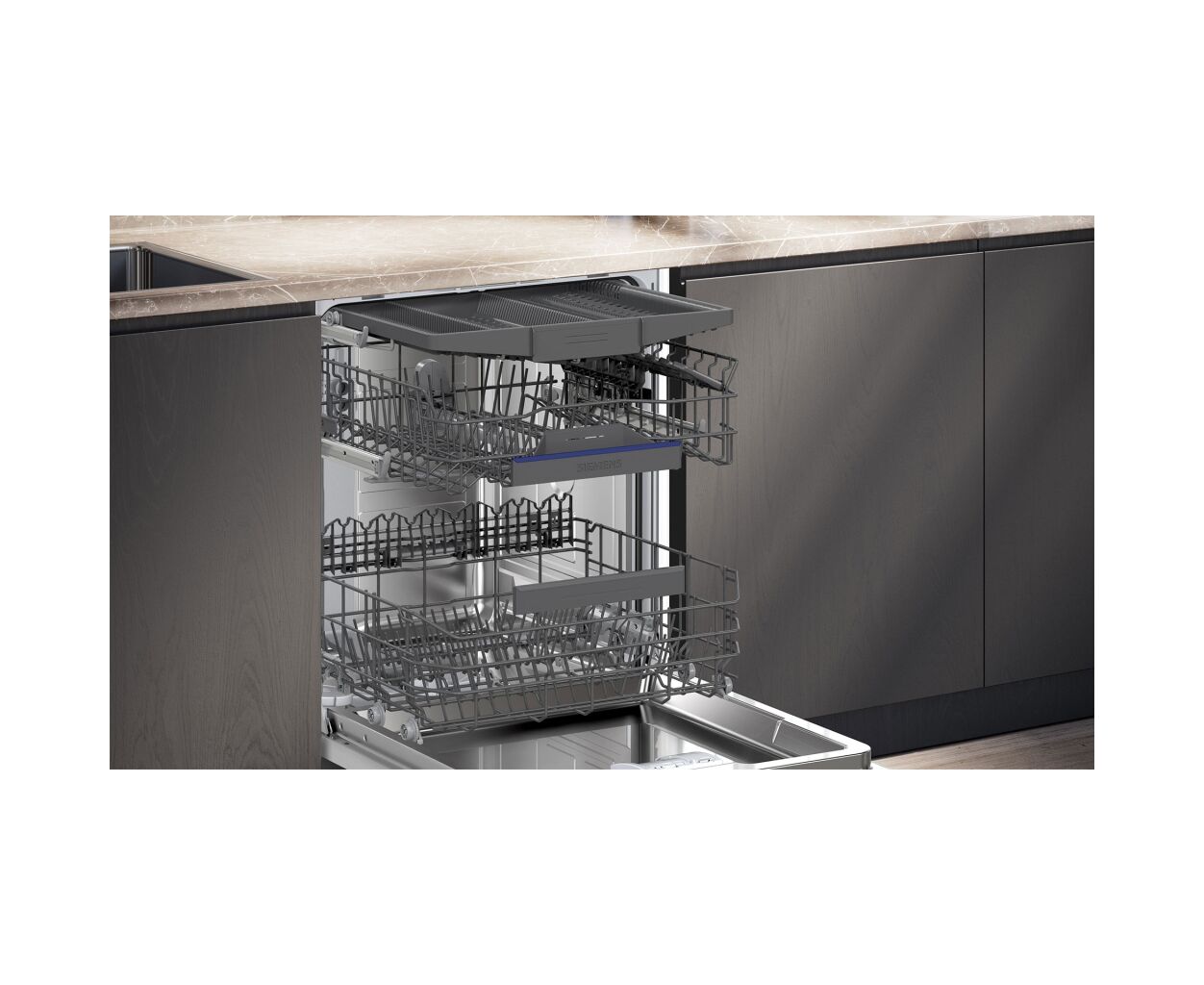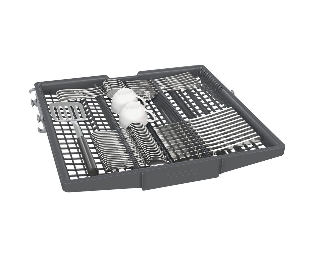Siemens iQ300 SN63HX16CE имеет три корзины, в том числе ящик для столовых приборов и мелких предметов, а также регулируемый верхний короб, позволяющий адаптировать пространство под посуду разного размера.