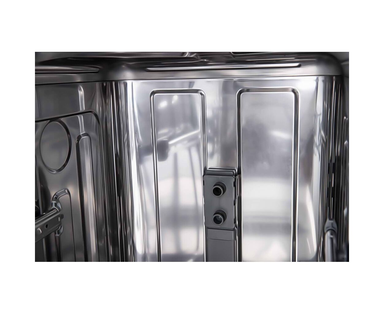 Работает тихо (49 дБ) – ее почти не слышно в соседней комнате, а расход воды всего 9 литров на цикл, что значительно экономнее, чем ручная мойка.