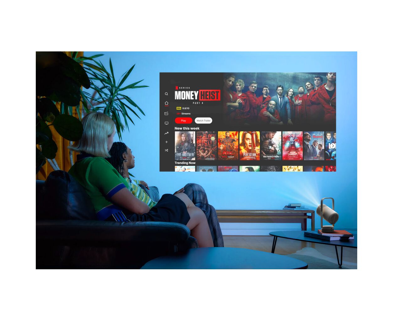 Это больше, чем просто умный портативный проектор — двойные 3W динамики, настроенные Sound by JBL, мощно воспроизводят ваши любимые мелодии, а режим Ambient Light Mode (режим окружающего освещения) создаёт идеальное настроение для отдыха.