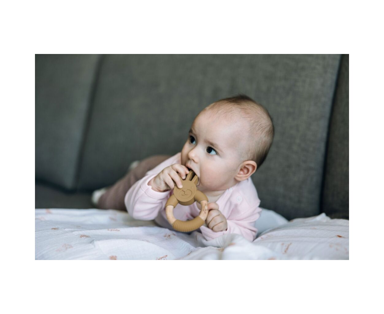 Описание Прорезыватель FreeON силіконовий зайчик, охра (49492)