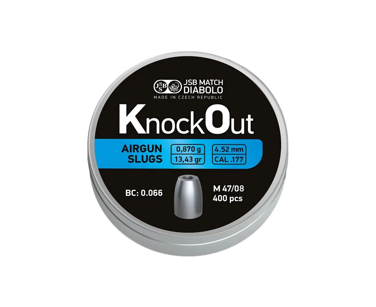 Пульки JSB Diabolo KnockOut Slugs 4,52 мм, 0,87 г, 400 шт/уп (546126-400)
