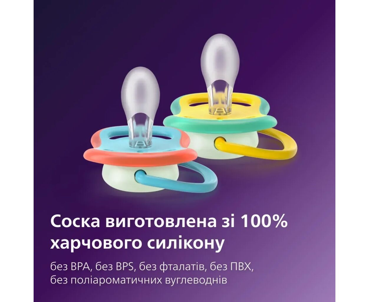 Описание Пустышка Philips AVENT Ultra Air Нічна 18+ місяців 2 шт, блакитно-жовта (SCF376/32)