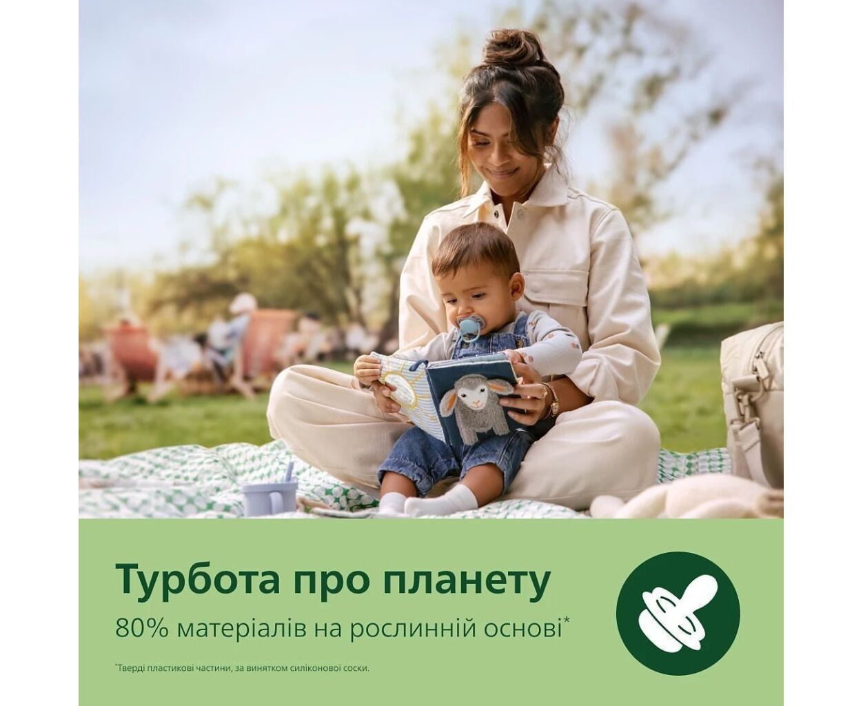 Вся линейка Philips Avent ultra, включая пустышки и стерилизационные футляры, изготовлена с использованием 80% растительных материалов.