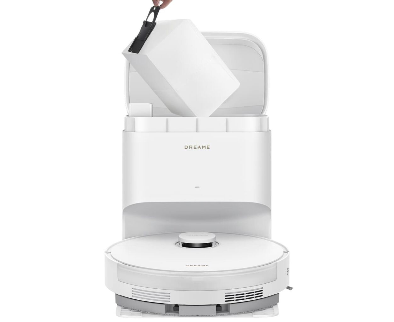 D20 Pro Plus оборудован станцией, которая автоматически опорожняет мусорный контейнер после уборки. Объем мешка для пыли обеспечивает до 150 дней использования без необходимости ручной очистки, что значительно экономит время и усилия пользователя.
