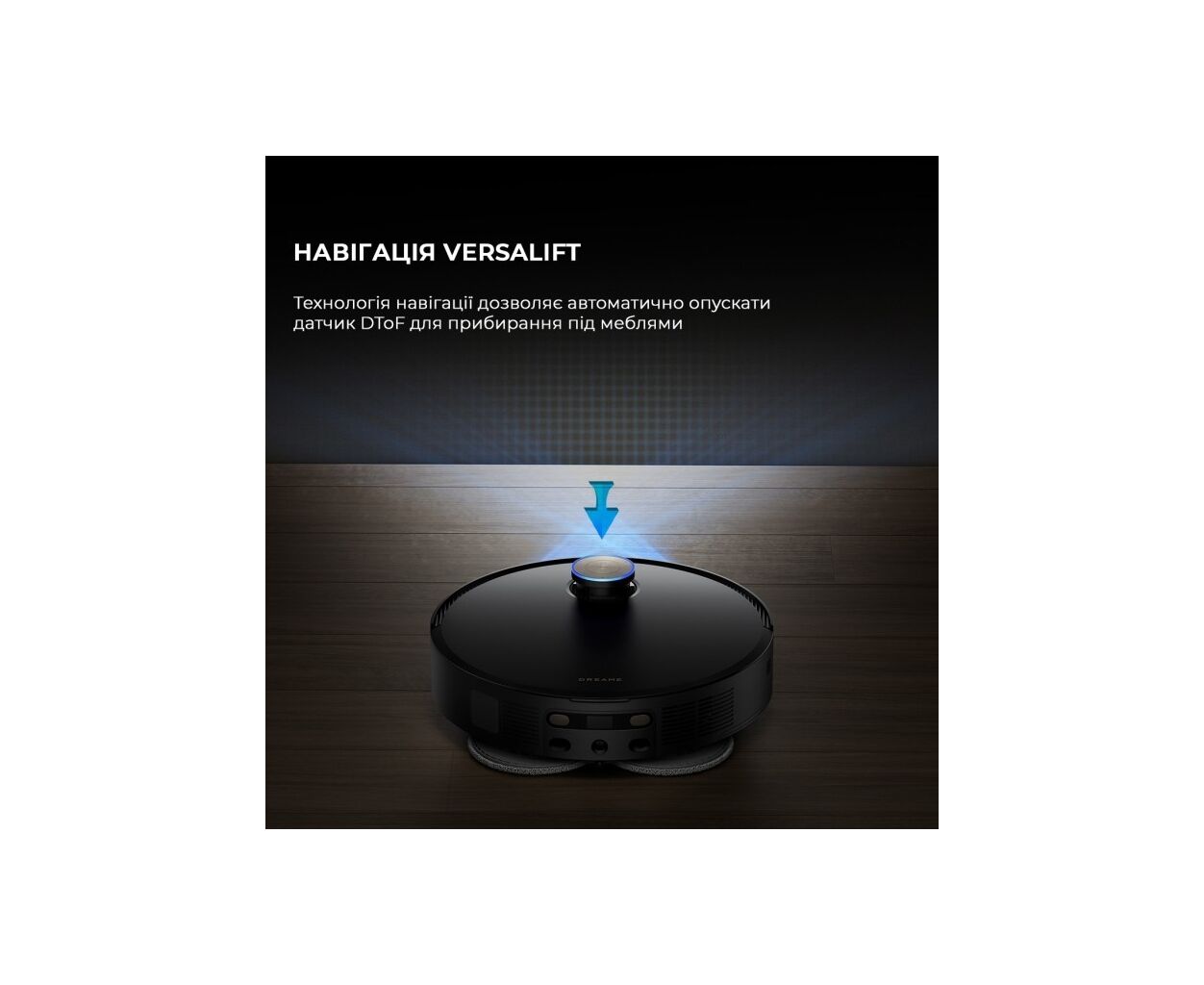 Пылесос X50 Ultra Complete улучшает работу датчика сканирования на 360 градусов, создавая подробную карту без слепых зон для точной навигации без ненужного вращения. Технология навигации VersaLift интеллектуально втягивает датчик DTof, когда пылесос двигается под мебелью.