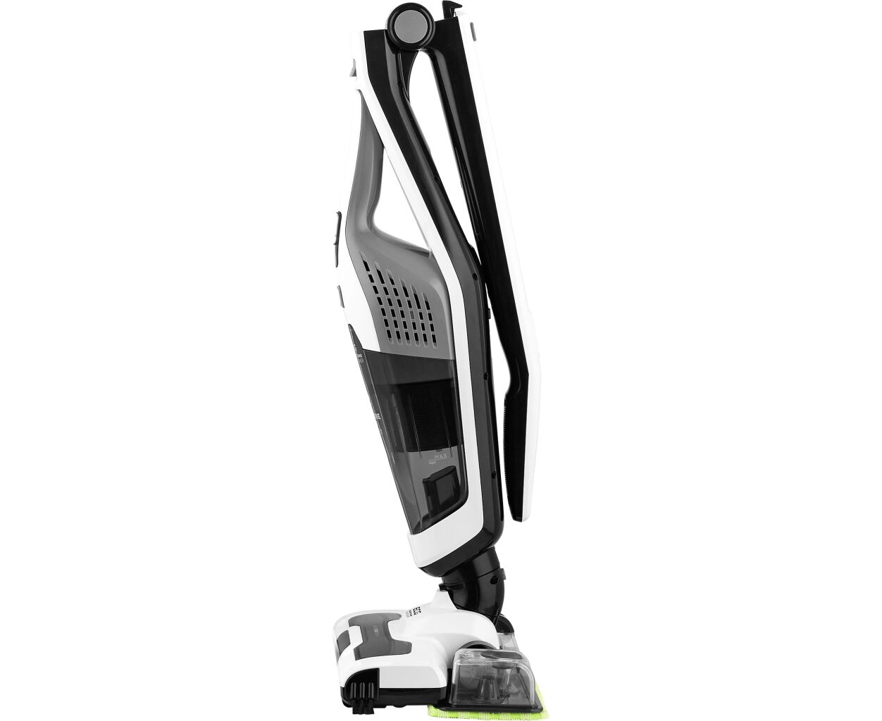 Особенностью этого пылесоса является дополнительный съемный комплект для протирания пола со встроенной емкостью для воды объемом 0.2 литра. Это позволяет выполнять не только сухую, но и влажную уборку, создавая идеальную чистоту на любых поверхностях. Удобная текстильная насадка обеспечивает мягкое протирание без повреждения деликатных материалов.