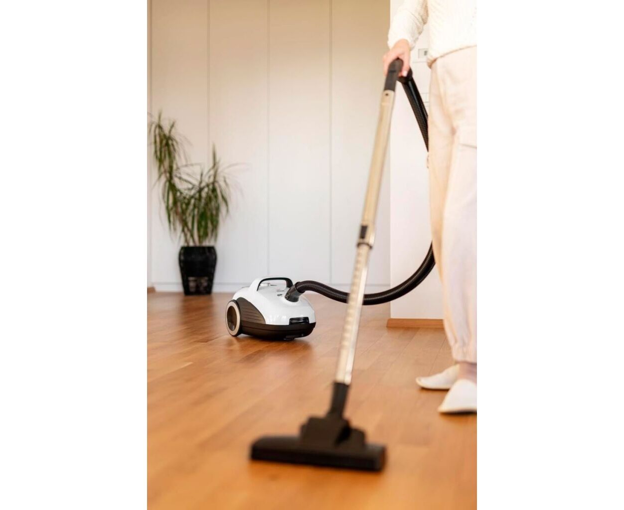 Резиновые колеса являются важной частью конструкции пылесоса, что предотвращает повреждение деликатных полов, в частности паркета, ламината и плитки. Они также обеспечивают стойкость пылесоса и плавный ход при уборке. Благодаря мягкой поверхности колеса не оставляют следов или царапин, что позволяет свободно перемещать пылесос по гладким и твердым поверхностям без риска.