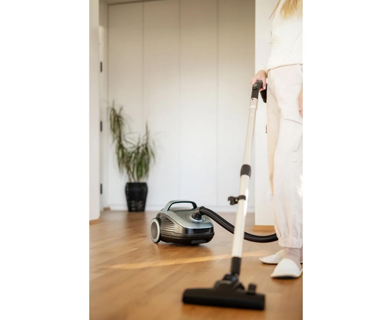 Резиновые колеса являются важной частью конструкции пылесоса, что предотвращает повреждение деликатных полов, в частности паркета, ламината и плитки. Они также обеспечивают стойкость пылесоса и плавный ход при уборке. Благодаря мягкой поверхности колеса не оставляют следов или царапин, что позволяет свободно перемещать пылесос по гладким и твердым поверхностям без риска.