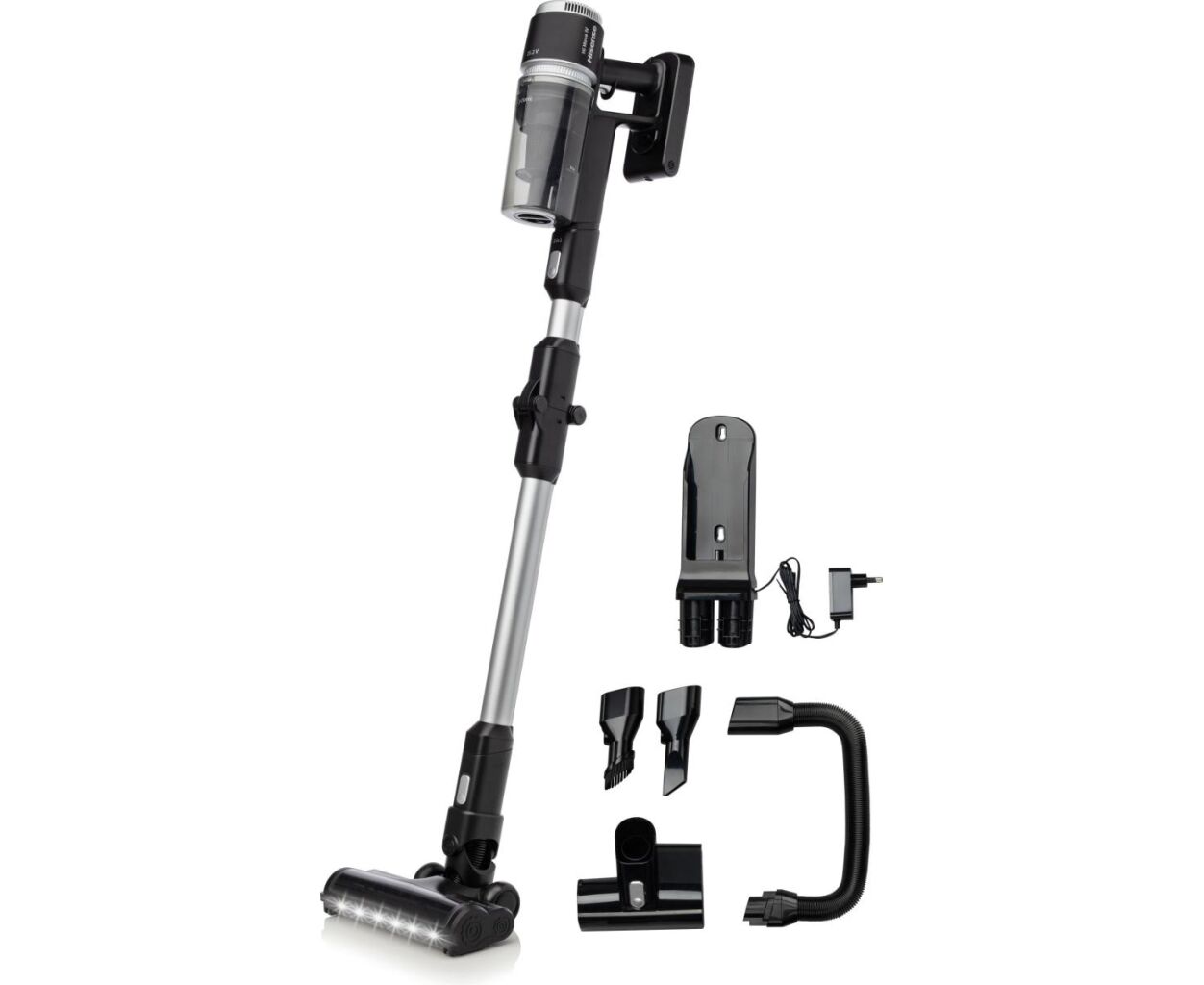 Вертикальный пылесос превращается в ручной за считанные секунды. Он поставляется с большим количеством принадлежностей, таких как складывающаяся алюминиевая всасывающая трубка, гибкий шланг, турбощетка с электроприводом, щелевая насадка, щетка для удаления пыли и щетка для кровати. Все насадки можно использовать в сочетании с обеими всасывающими трубками, поэтому комбинации и возможности обрести идеальную пару для любых нужд безграничны.