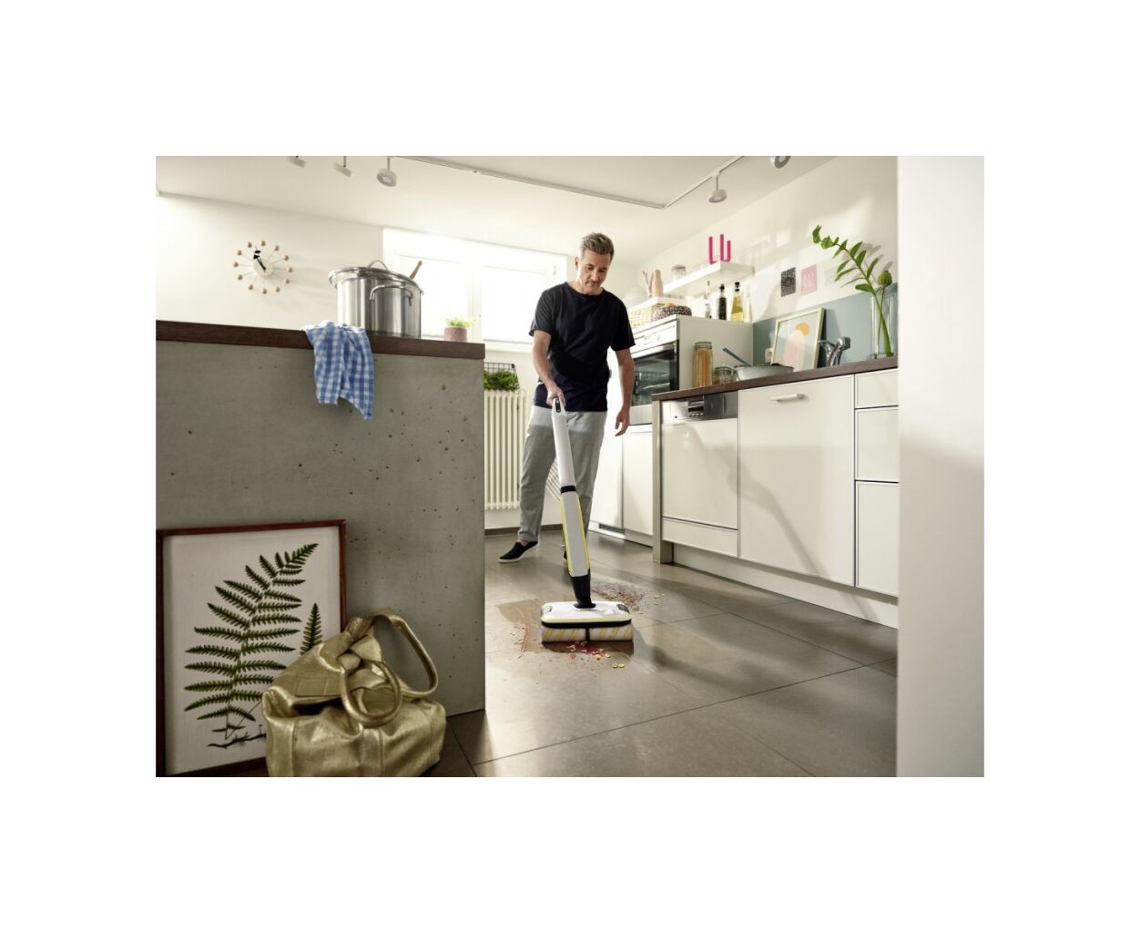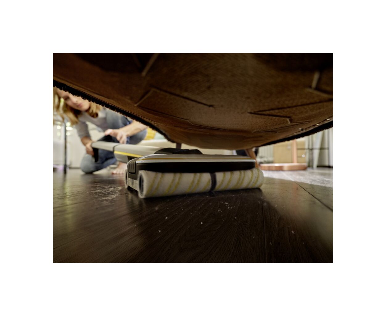 Благодаря технологии четырех роликовых щеток, вращающихся навстречу друг другу, аккумуляторная электрошвабра Karcher FC 7 Cordless легко и быстро удаляет из любых твердых напольных покрытий любые повседневные сухие и влажные загрязнения. Аппарат тщательно очищает пол до стен, причем режим Boost позволяет устранять устойчивую грязь, а специальный фильтр - собирать даже волосы. При этом достигается значительная экономия времени, а результат уборки на 20% превосходит снабжаемый обычной шваброй. Одного заряда аккумулятора достаточно для 45 минут работы аппарата. Расход воды и скорость вращения автоматически увлажняющихся щеток допускают регулировку (предусмотрено 2 режима уборки), а отдельные бачки для чистой и грязной воды исключают необходимость в переносе ведра с водой.