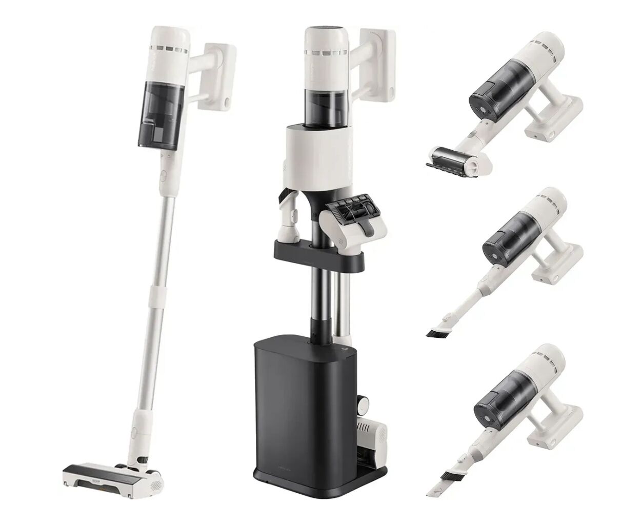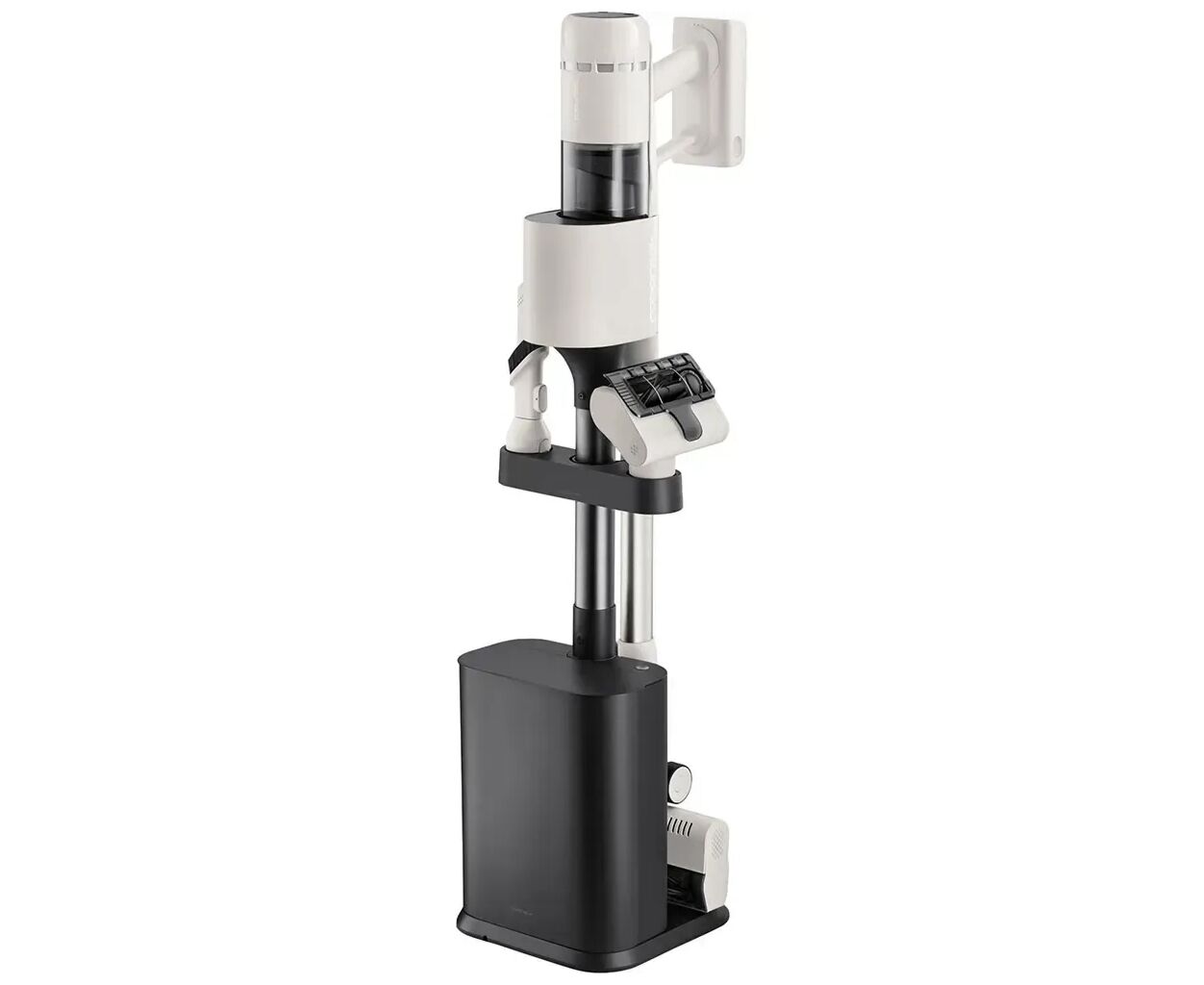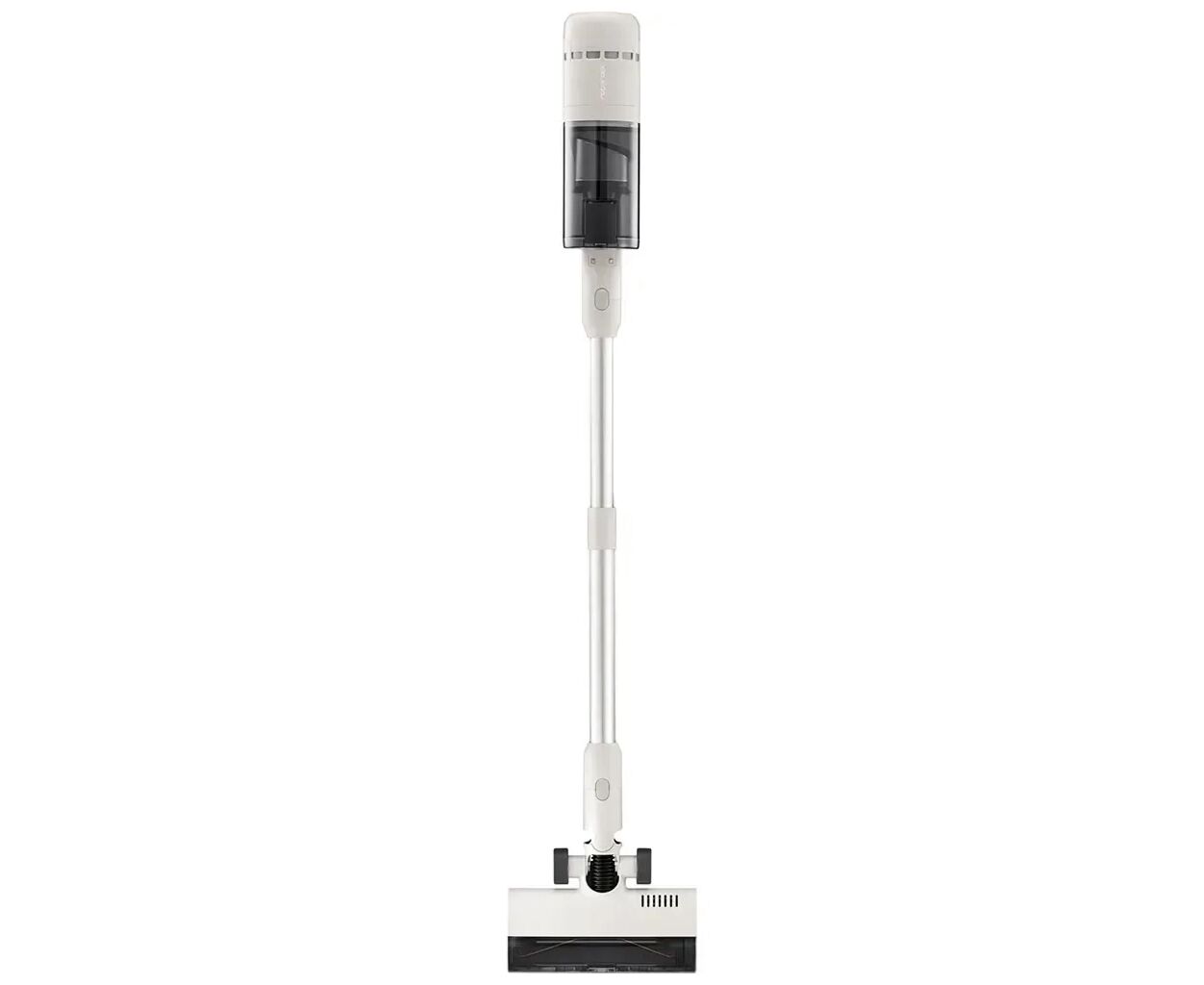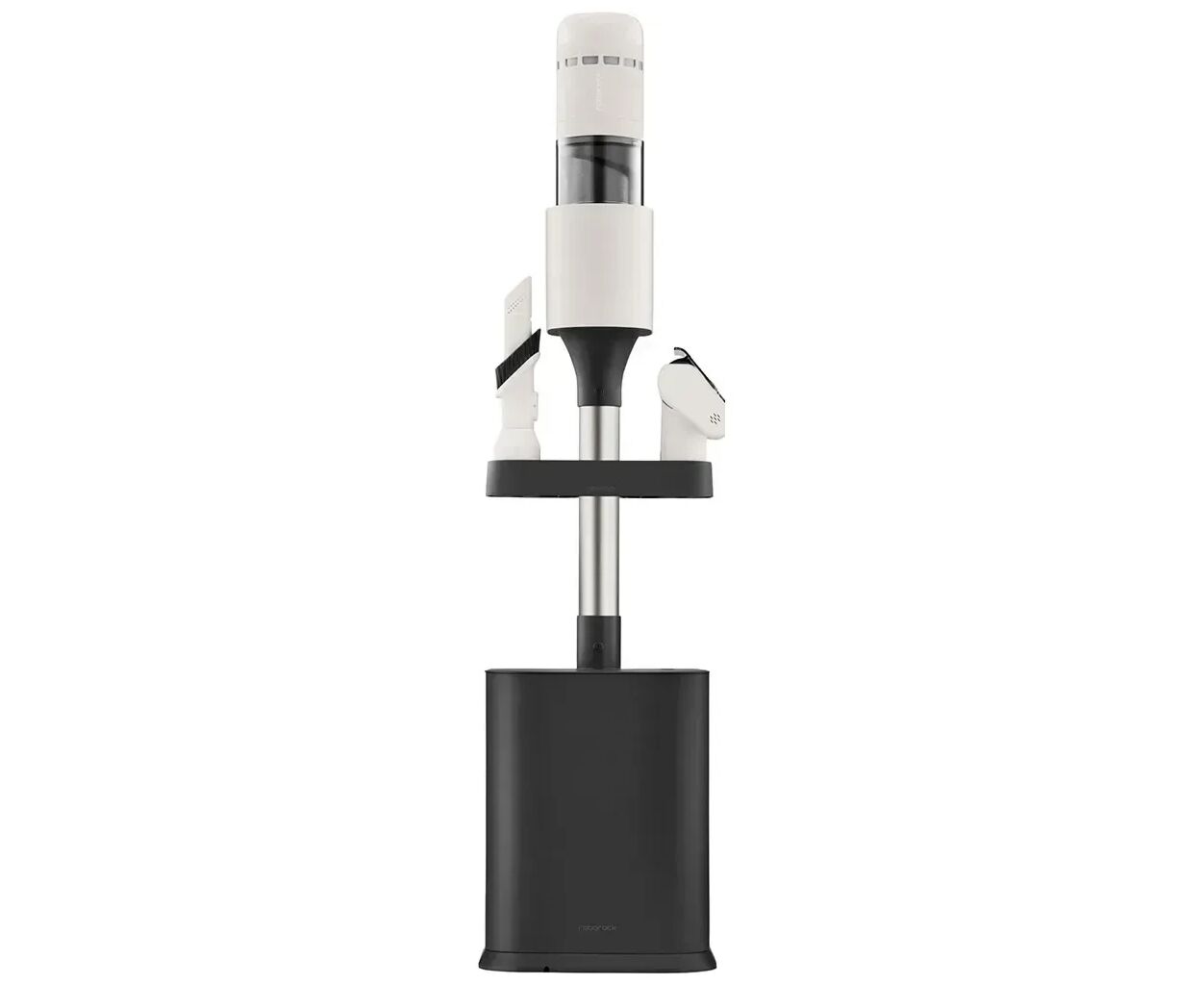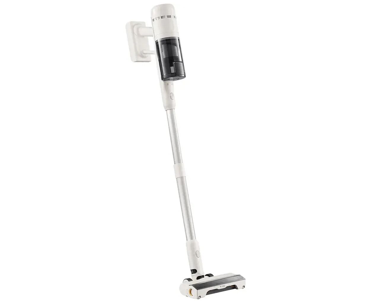 Пылесос стильно дополнит интерьер благодаря своему белому элегантному дизайну и возможности вертикальной парковки, что упрощает его хранение. Он легко размещается на специальной подставке, готовый снова быстро приступить к работе.