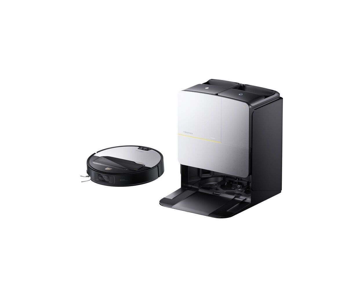робот, влажная, контейнер, на корпусе, через смартфон, 22000 Па, аккумулятор, 120 Вт, Тип фильтра - НЕРА, моющий фильтр, Емкость пылесборника - 0.27 л, Емкость водяного бака - 0.07 л, Длина шнура - беспроводной, 61 дБ, робот-пылесос: 35.3 х 35 х 7.98 мм док-станция: 48.8 х 47.5 х 38.1 cм, Цвет - серебристый, черный