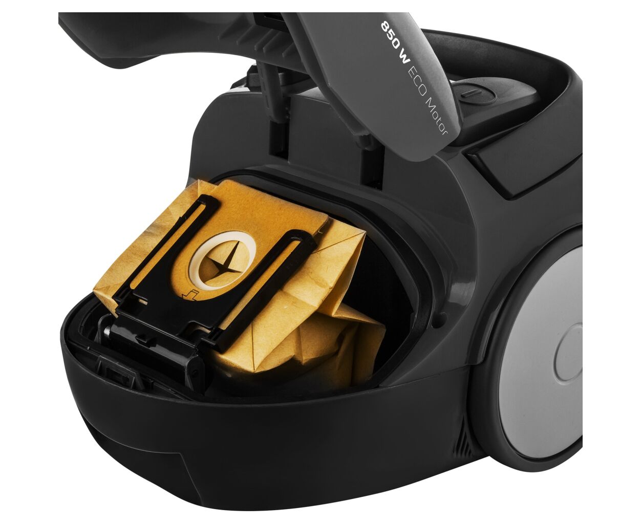 Особенностью модели является мешок-пылесборник объемом 1.5 л, который позволяет собирать большое количество пыли без частой его замены. Индикатор заполнения поможет вовремя понять, когда необходимо провести очистку или замену мешка. Пылесос оснащен пятирежимной системой фильтрации с HEPA фильтром, что гарантирует отличное удержание даже мельчайших частиц пыли и аллергенов, обеспечивая идеальную чистоту в доме и поддерживая здоровую среду для вас и вашей семьи.