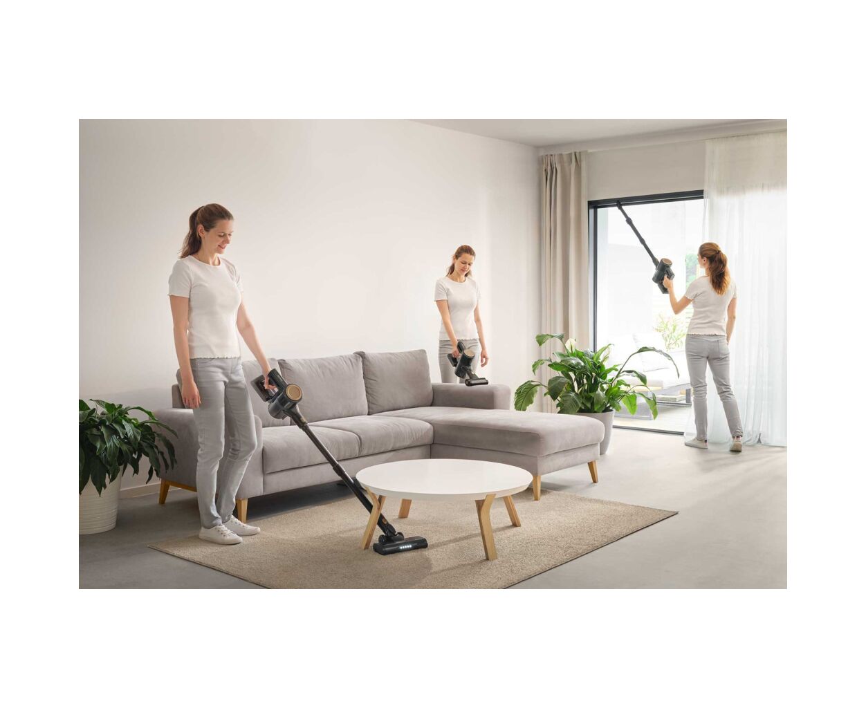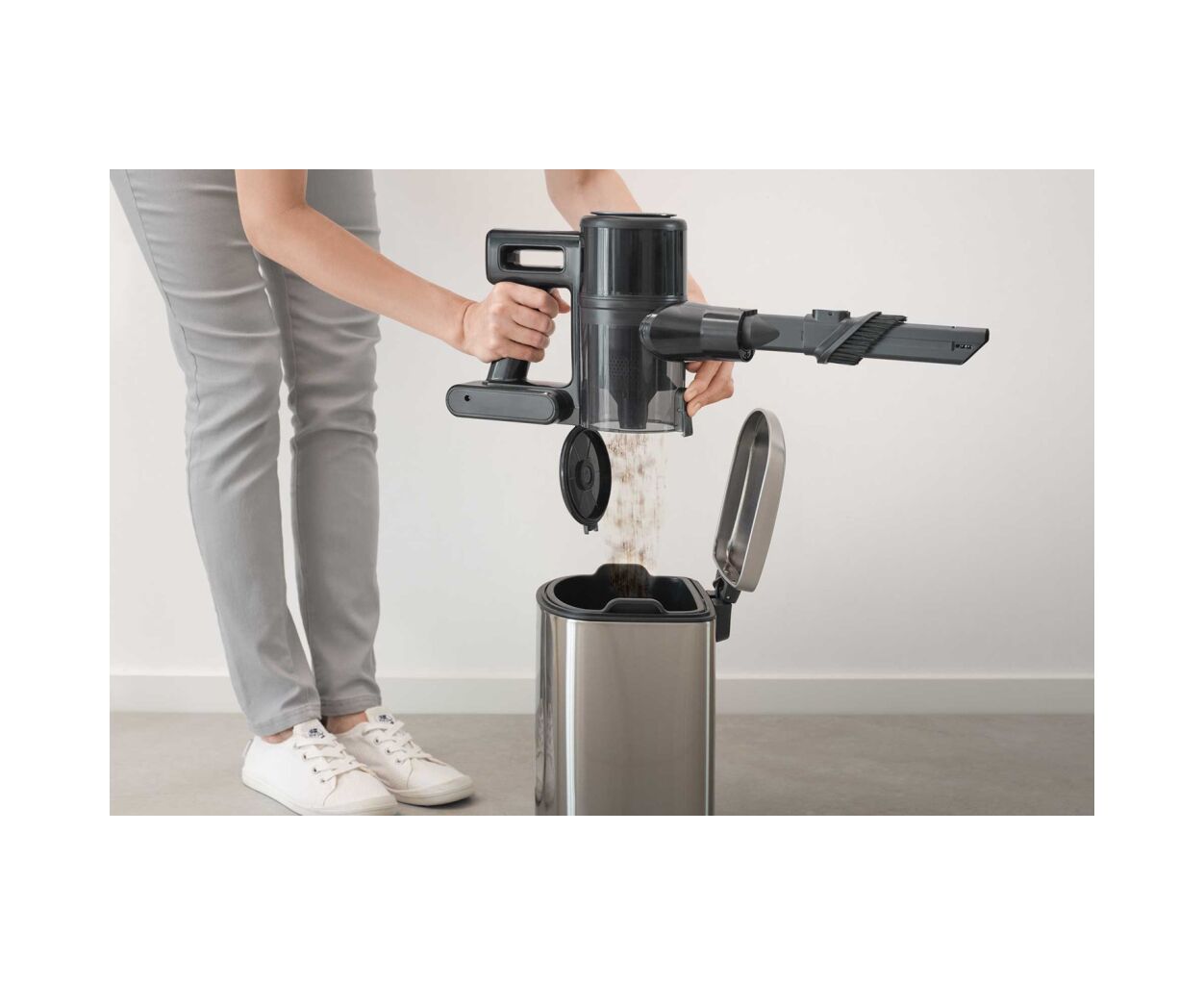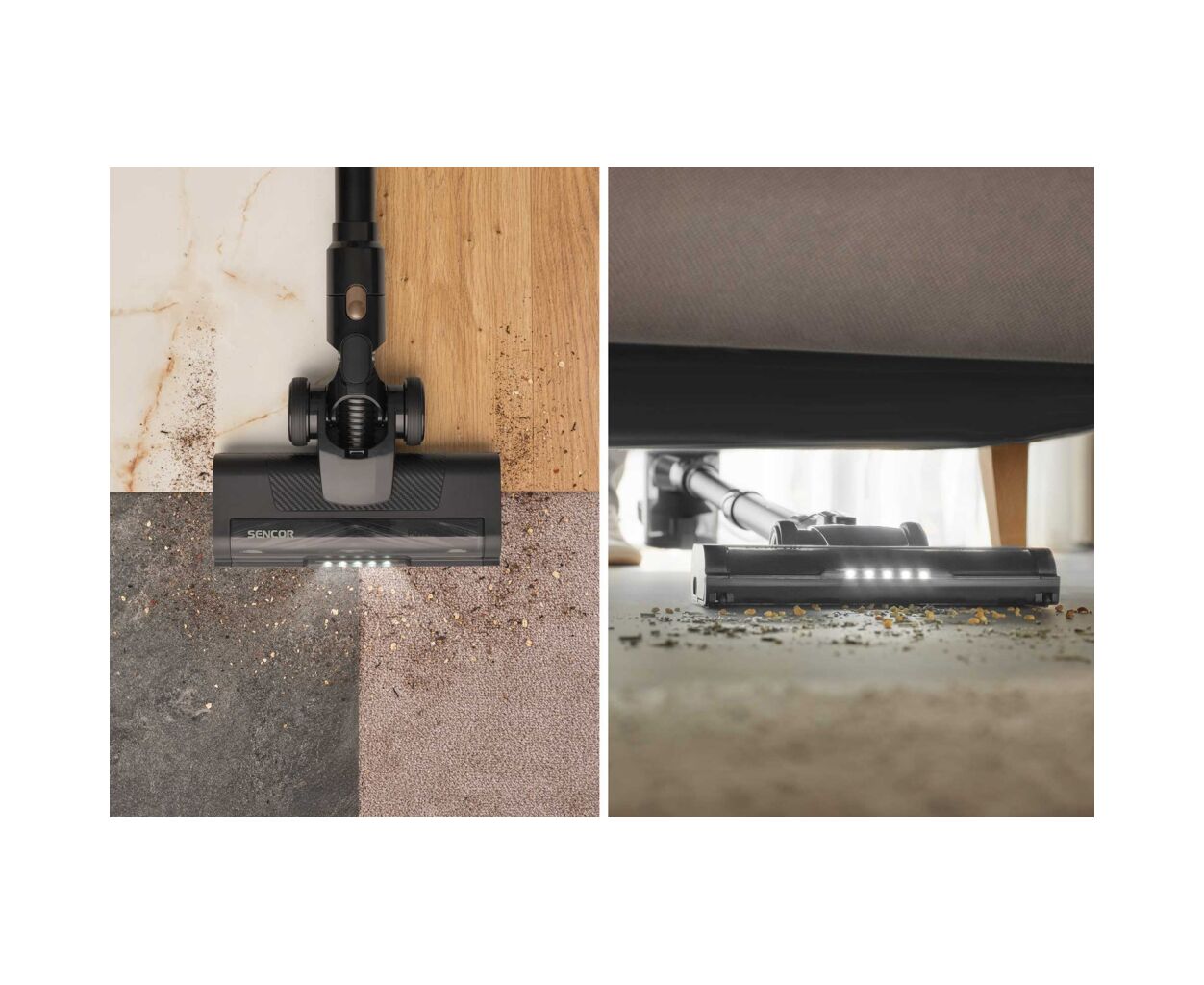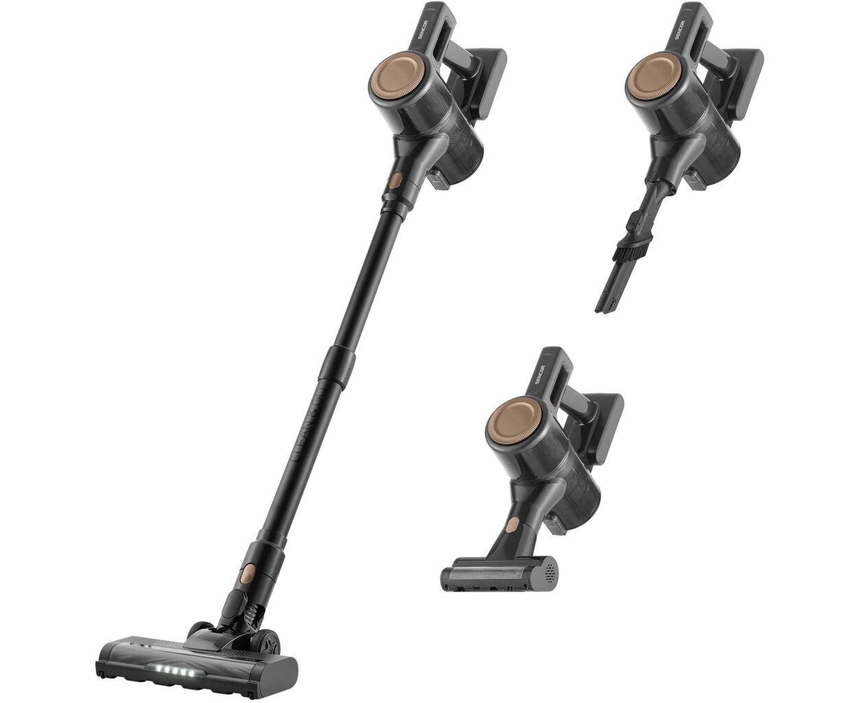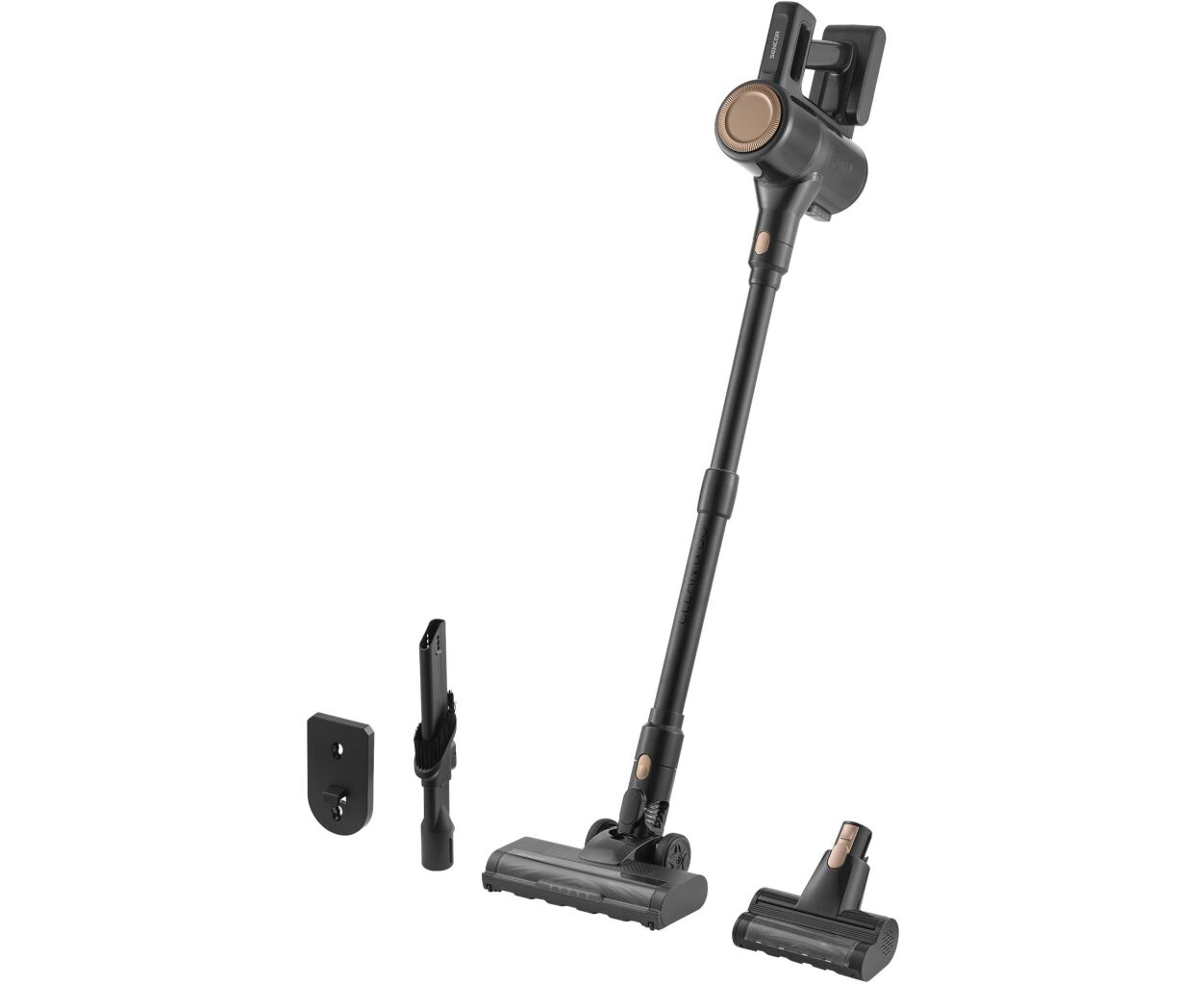 - Моторизованная щетка Cat & Dog; Универсальная удлинённая щелевая и пылевая насадка; Телескопическая трубка для регулировки высоты; Напольная насадка с LED-подсветкой и моторизированной щеткой;