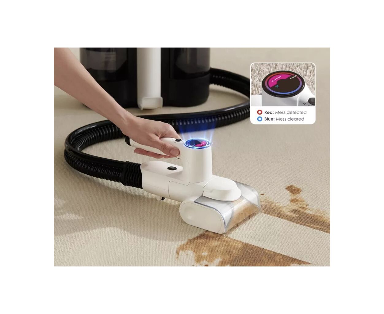 Пятна больше не проблема – откройте для себя Tineco iCarpet Spot! Tineco iCarpet Spot — это высокоэффективный портативный очиститель пятен, предназначенный для быстрой, удобной и глубокой чистки самых сложных участков в вашем доме или автомобиле. Благодаря мощному всасыванию и продуманному функционалу, это устройство идеально подходит для ухода за коврами, обивкой мебели, матрацами, детскими автокреслами, салоном авто и даже труднодоступными местами, как лестница.