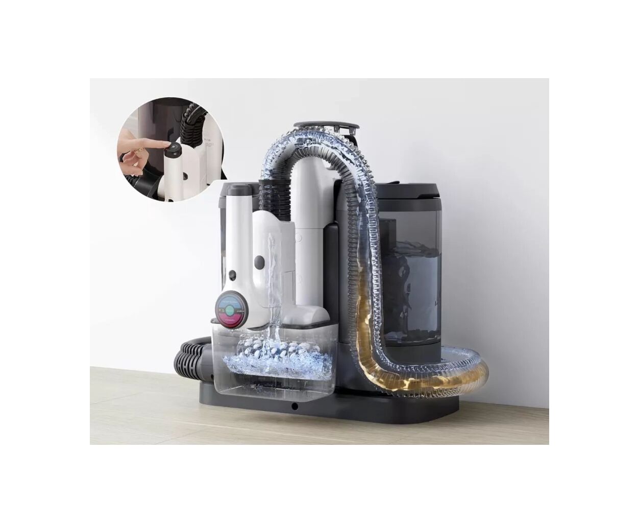 Интегрированная система с отдельными отделениями для чистой и использованной воды обеспечивает непрерывную уборку без необходимости частой остановки. Вы просто заливаете чистую воду, а затем сливаете грязную – все в одном контейнере. Tineco iCarpet Spot — разумное решение для тех, кто стремится к чистоте без лишних усилий.
