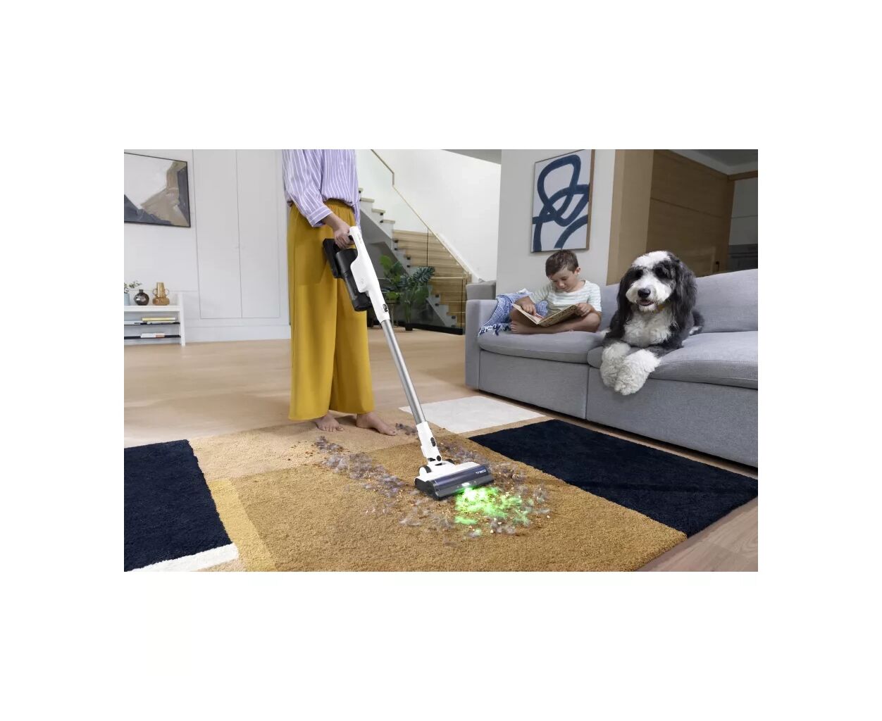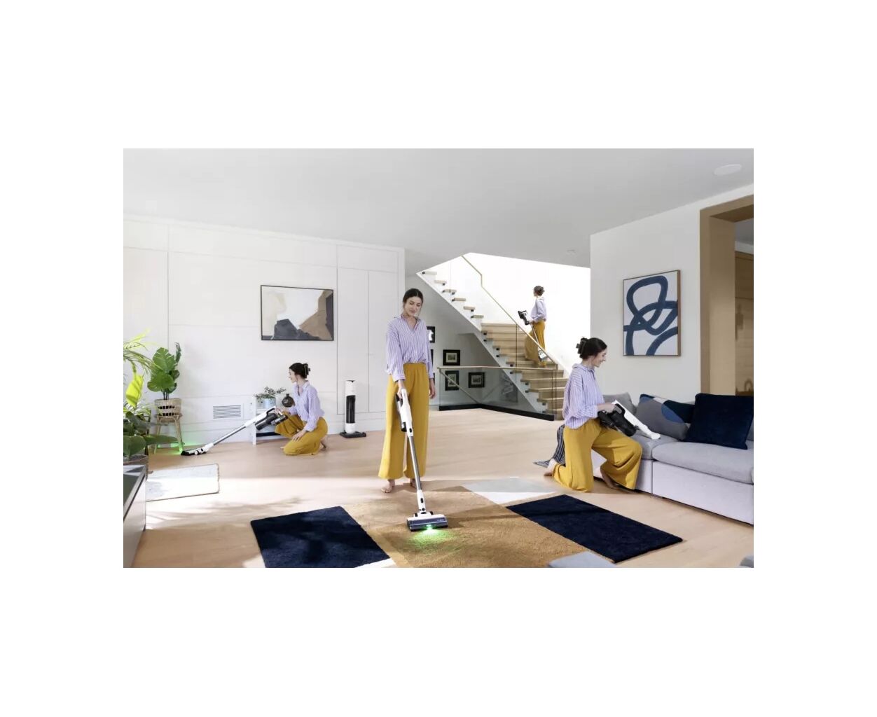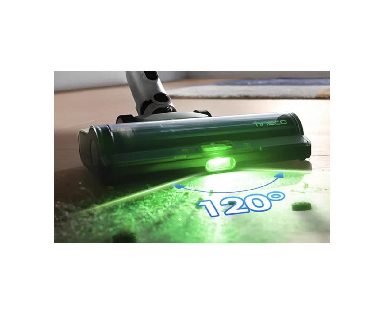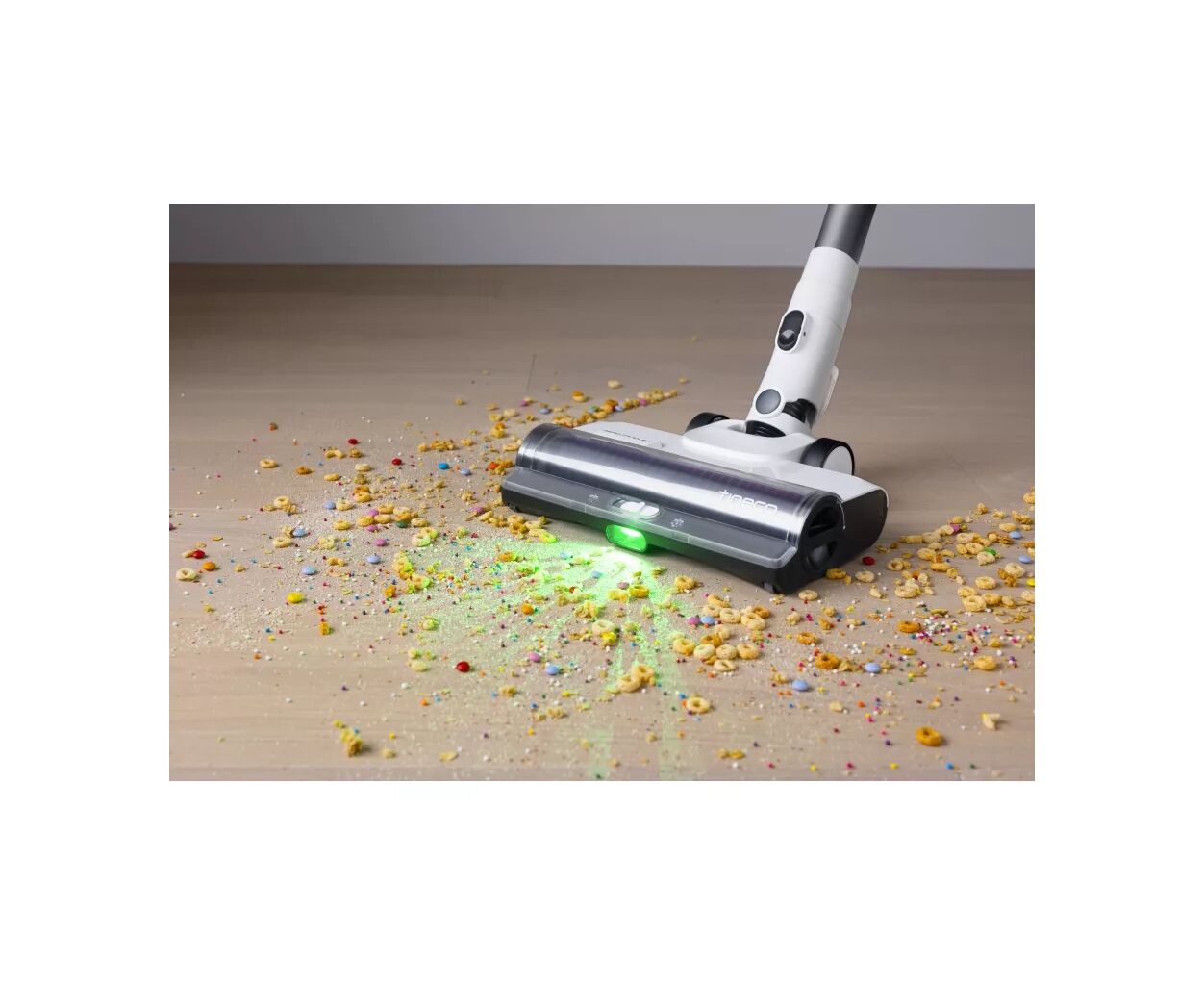 Надежное разделение воздуха и пыли без потери мощности. HEPA-фильтры в пылесосе и станции улавливают 99,99% частиц до 0,3 мкм – чистый воздух без аллергенов гарантирован. - 6. Технология ClogLess и подсветка 120°