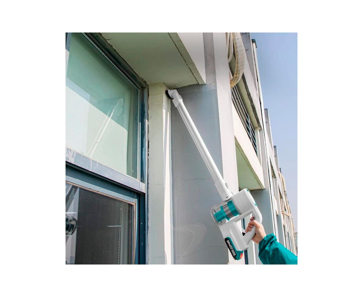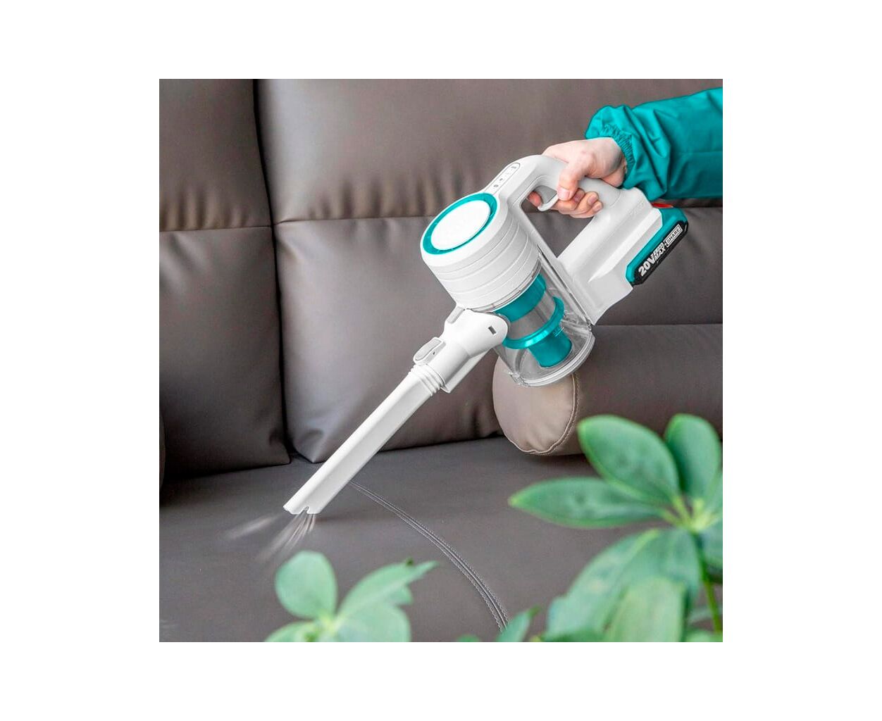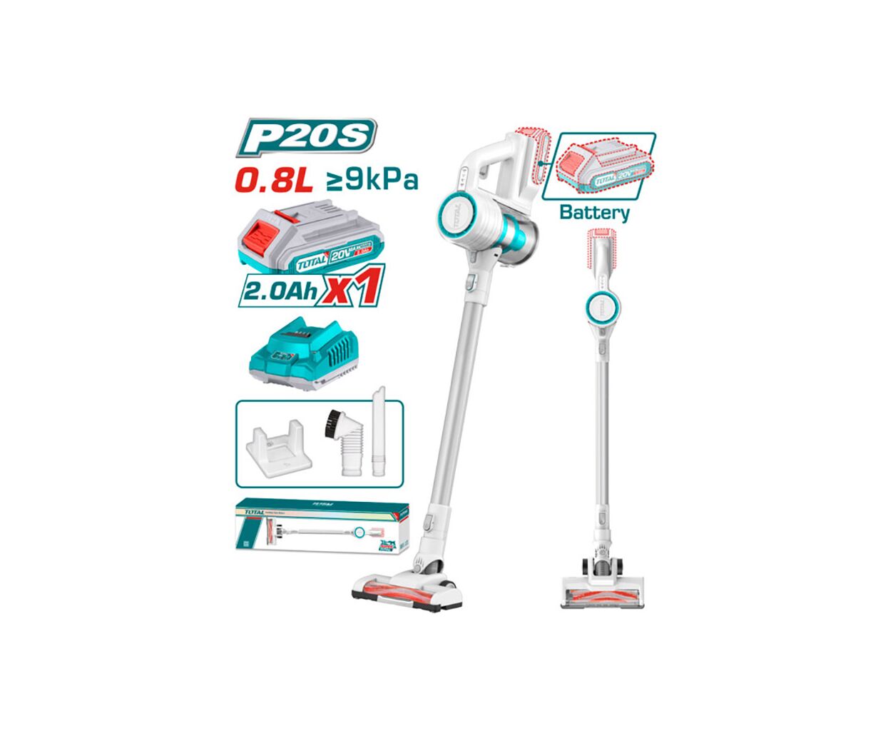Аккумуляторный ручной пылесос TOTAL TVLI2006 с напряжением аккумулятора 20В идеален для уборки как твердого пола, так и ковровых покрытий. Благодаря прозрачному пылесборнику (0.8л) есть возможность следить за количеством собранного мусора и осуществлять своевременную очистку. Два режима работы: вторая скорость для максимальной мощности, первая скорость для максимальной продолжительности работы. Время работы - 35 минут на низком уровне скорости, 18 минут на высокой скорости. Длина всасывающего шланга - 0.8м, максимальная мощность всасывания - 120Вт, время зарядки аккумулятора - 70 минут. В комплект входят аккумуляторная батарея 2 А, зарядное устройство, щелевая насадка - 1шт., металлическая труба - 1шт., насадка с ворсом - 1шт., кронштейн для хранения - 1шт., коробка.