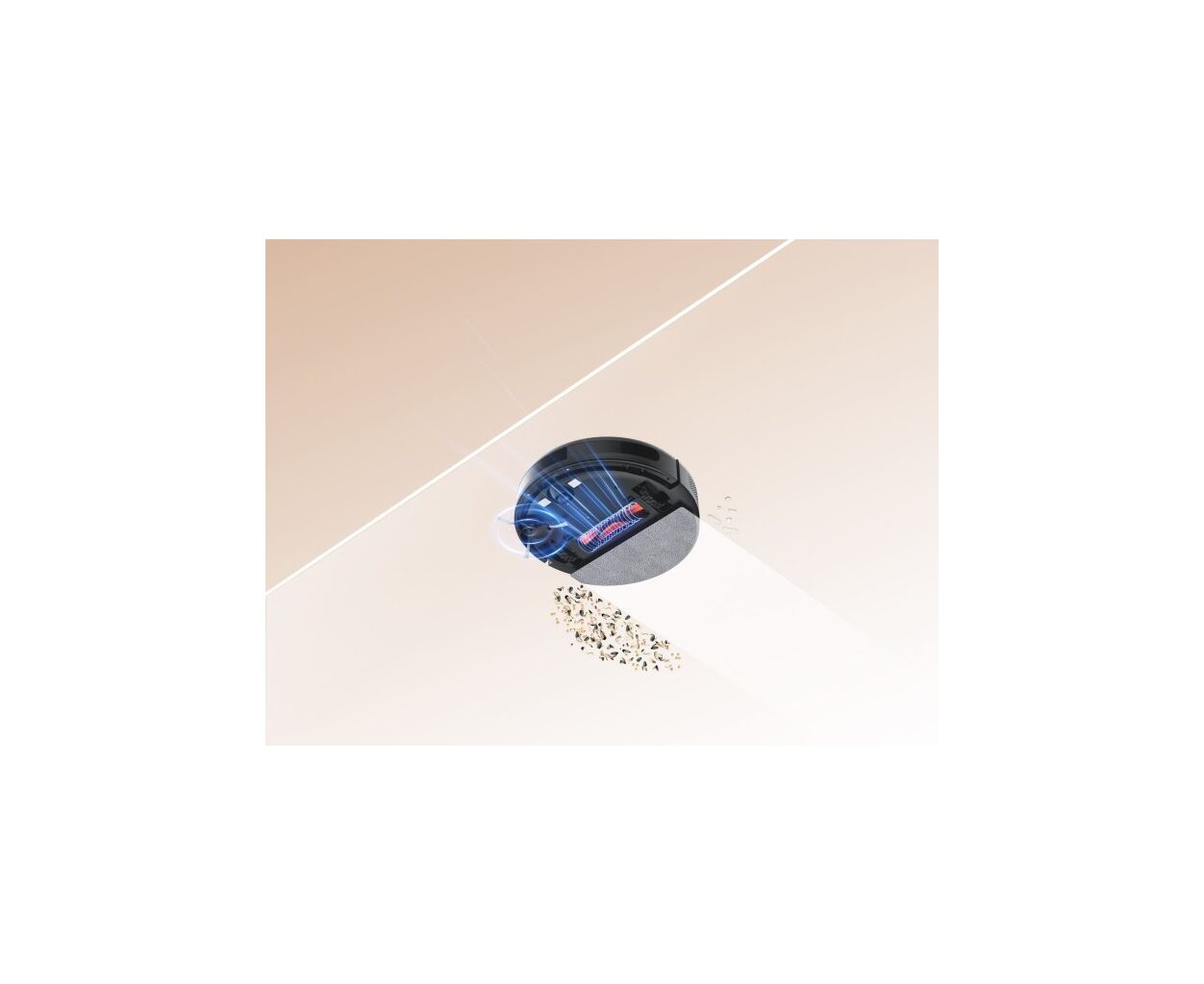 При мощности всасывания до 3000 Па и при поддержке 4 режимов уборки пылесос легко справляется с уборкой даже ковровых покрытий, убирая с пола не только большой мусор, но и мелкие частицы, застрявшие в ворсе ковра. В режиме сухой + влажной уборки пылесос работает до 110 минут, успевая за это время убрать во всем доме.