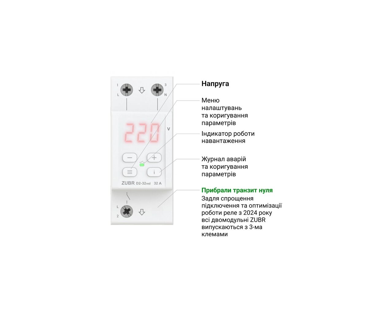 Описание Реле напряжения ZUBR D2-63 red (4820120221736)