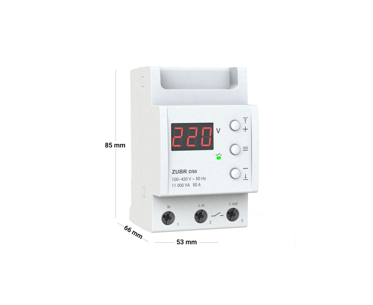 Простой монтаж в распределительном щитке на стандартную DIN-рейку обеспечивает удобство и надежность подключения. ZUBR D50 — это беспрецедентная защищенность и комфорт в использовании вашей электротехники.