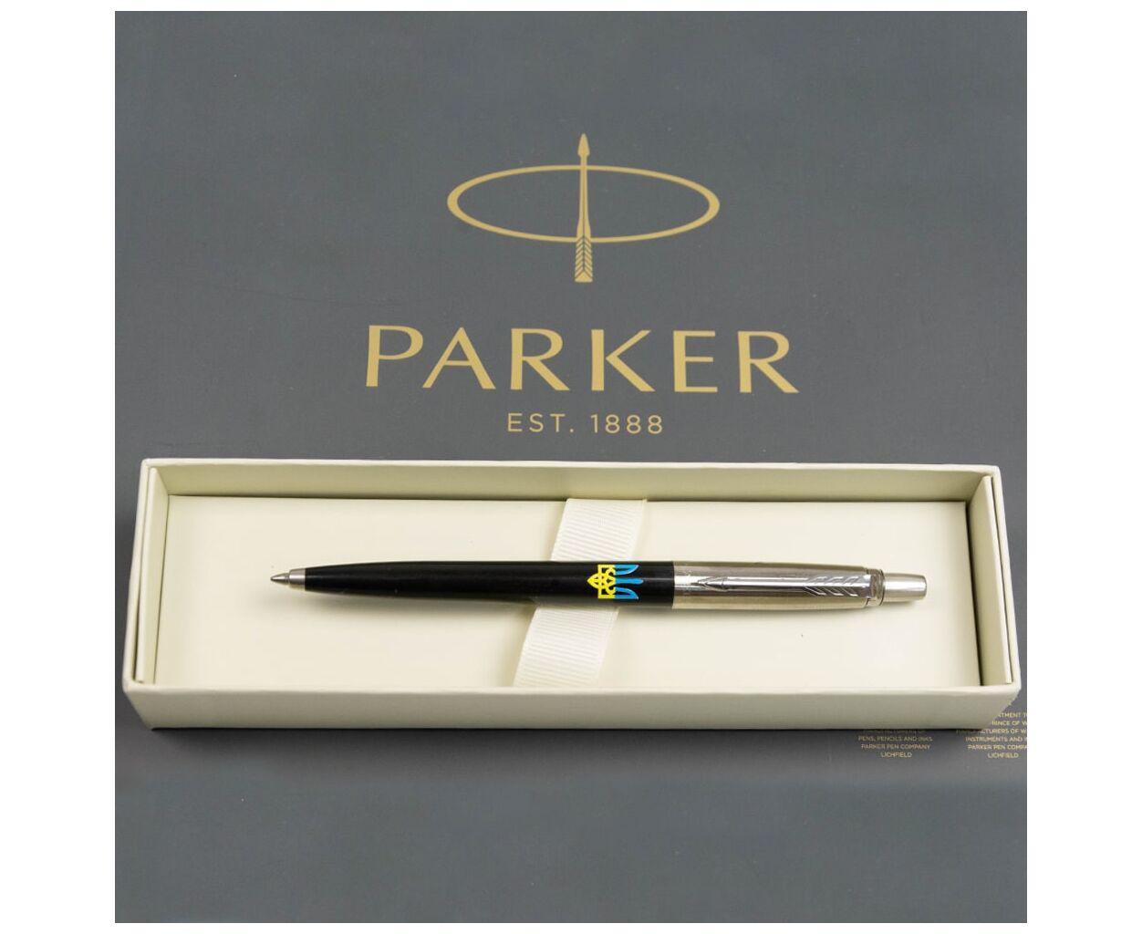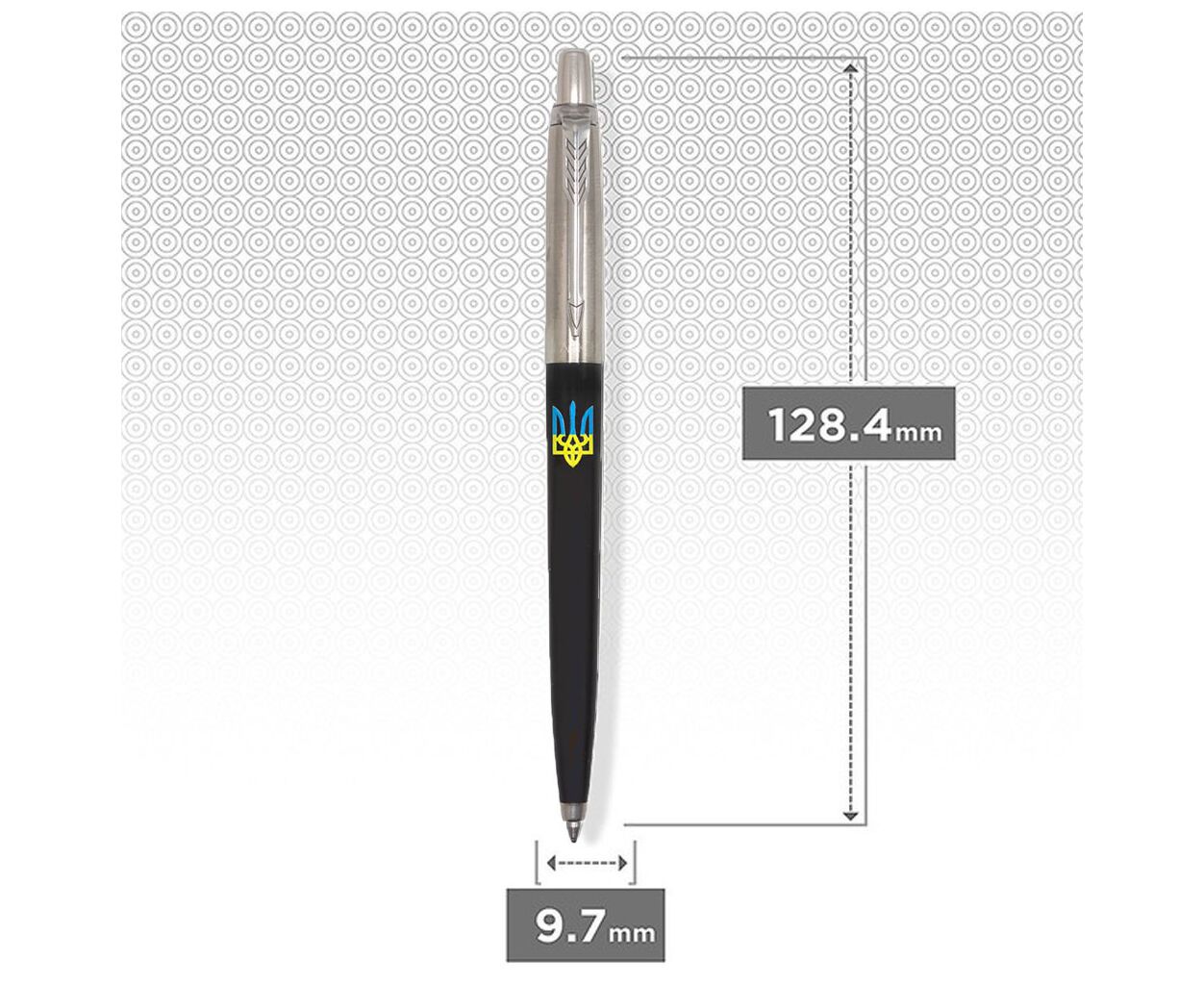 Черная шариковая ручка Parker JOTTER UKRAINE Originals Black CT с сине-желтым Трезубцем. Благодаря персонализированному дизайну с украинской символикой продемонстрирует вашу гордость быть украинцем и станет нетривиальным подарком. Jotter с 1954 года остается лучшей ручкой для тех, кому нужна простая и функциональная ручка для работы, обучения.