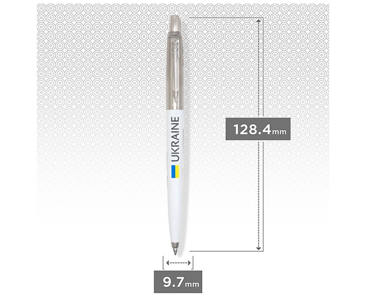 Шариковая ручка Parker JOTTER UKRAINE Originals White CT с цветной печатью Знамени Украины и надписи Украина. Благодаря персонализированному дизайну с украинской символикой продемонстрирует вашу гордость быть украинцем и станет нетривиальным подарком. Jotter с 1954 года остается лучшей ручкой для тех, кому нужна простая и функциональная ручка для работы, обучения.
