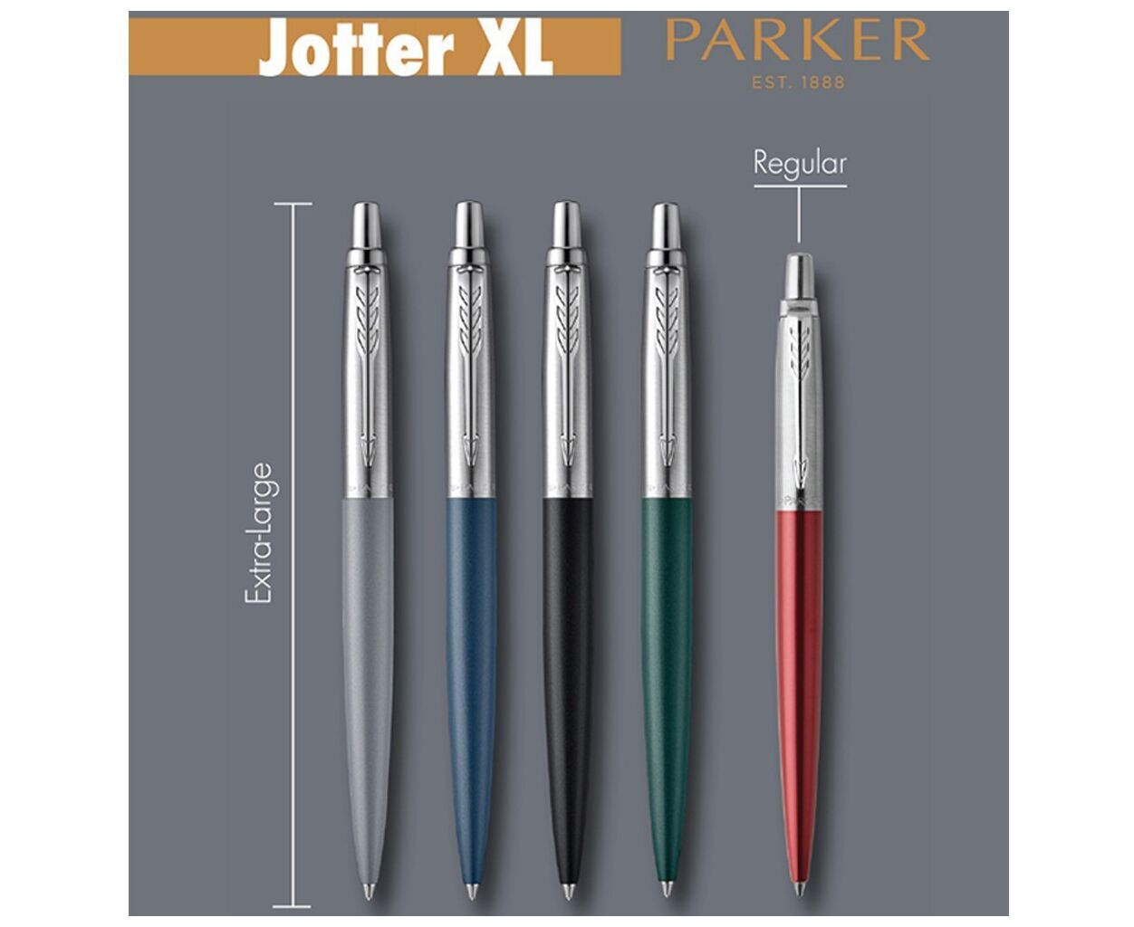 JOTTER XL Matt Gold CT BP – большая и стильная шариковая ручка Parker в золотисто-стальном дизайне. Шариковые ручки из линейки Jotter XL имеют на 7% длиннее и толще корпус, чем стандартные Jotter. Это делает ручку удобной для долгих сеансов письма во время работы или учебы, не жертвуя культовым стилем Jotter и статусом «простая и удобная ручка для работы».
