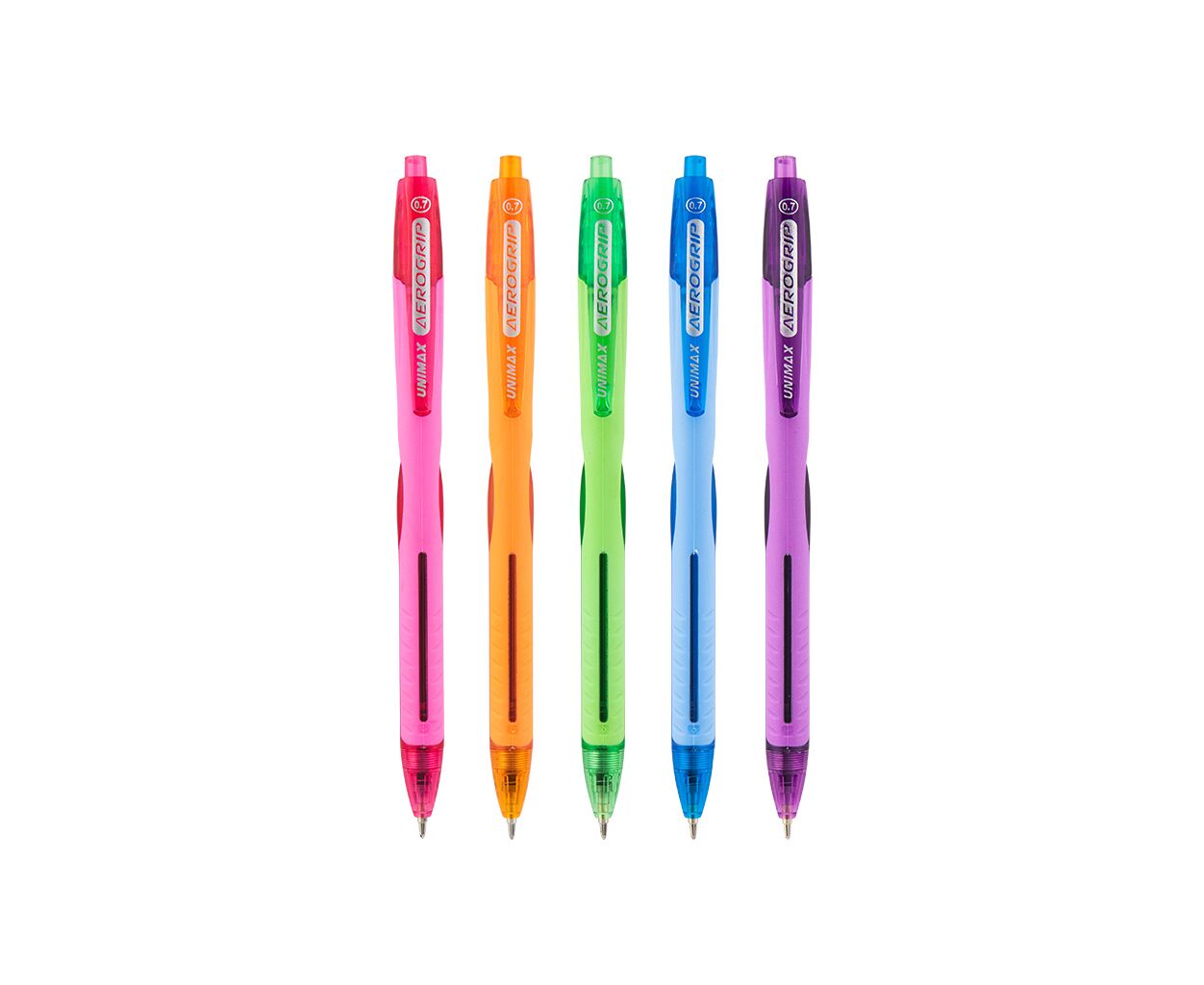 Ручка шариковая Unimax автоматическая Aerogrip-3, набор 5 цветов (ассорти) (UX-140-20)
