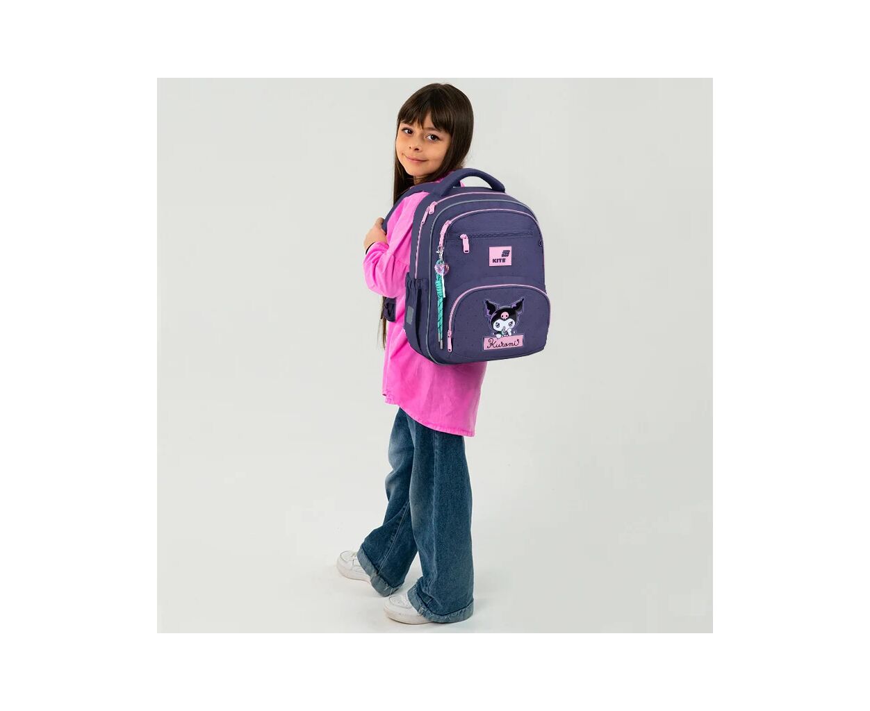 для первоклассников, пол - девочка, спинка - ортопедическая, объем - 13.5 л, Kuromi, 710 г, фиолетовый