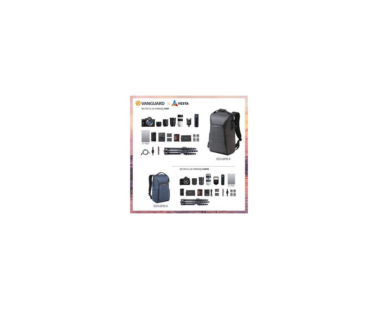 Когда Вы готовы перейти от снимков в смартфоне к настоящей фотографии, рюкзаки Vanguard Vesta Aspire - это именно то, что Вам необходимо, конечно же, наряду с самой фотокамерой. Vesta Aspire 41 воплощает концепцию "минимум для максимума". При небольших внешних размерах и скромном внутреннем объеме этот рюкзак способен вместить полный набор начинающего фотографа, включая полноразмерный штатив, и личные вещи. Разработанный для самых популярных комплектов камер, Vesta Aspire обеспечивает отличную защиту от ударов и влаги, а также функциональность наряду с интуитивно понятной компоновкой карманов и отделений.