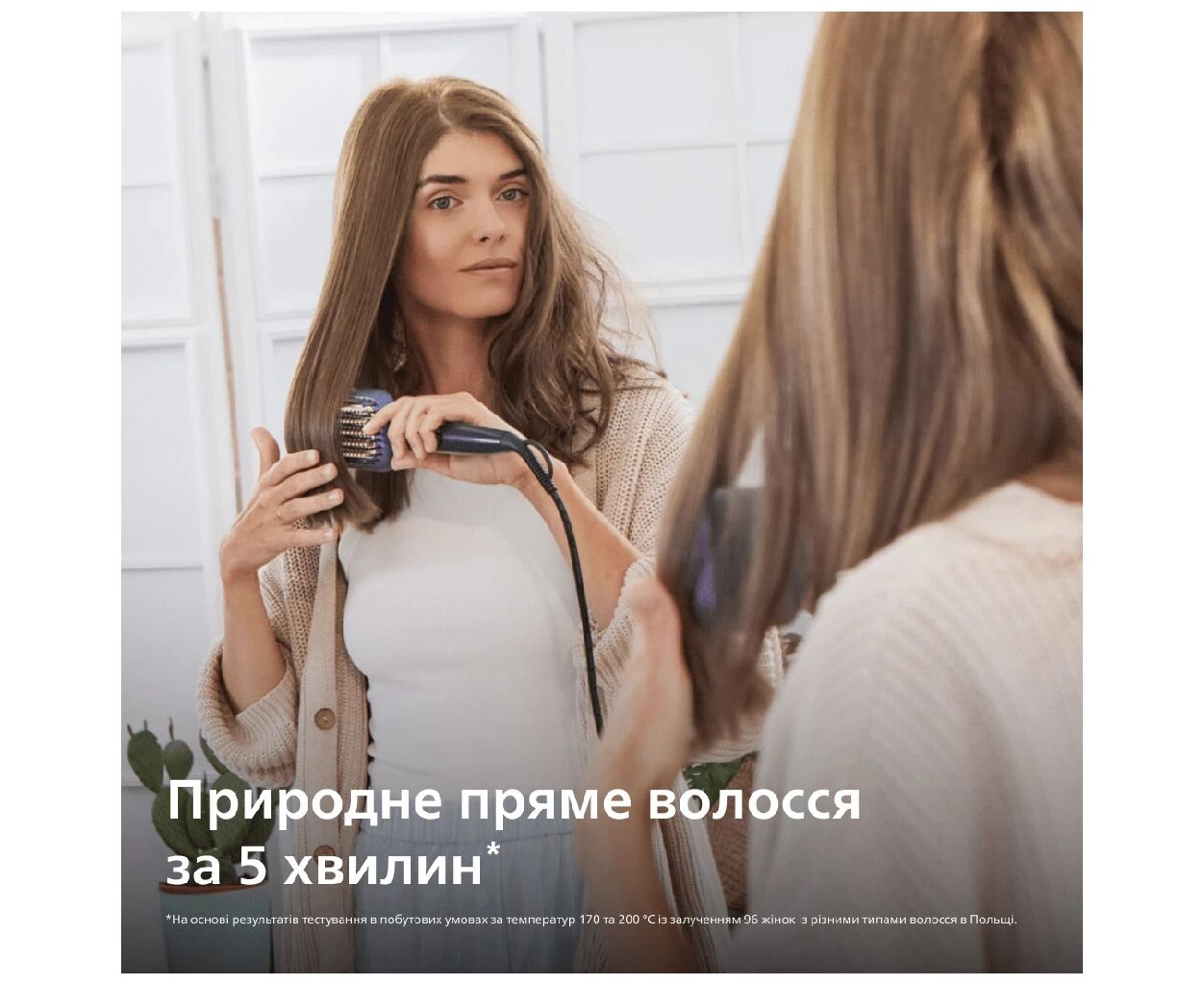 Оптимальная температура щетинок сводит к минимуму урон от перегрева, уменьшая трение. Волосы выглядят естественно прямыми и шелковистыми.