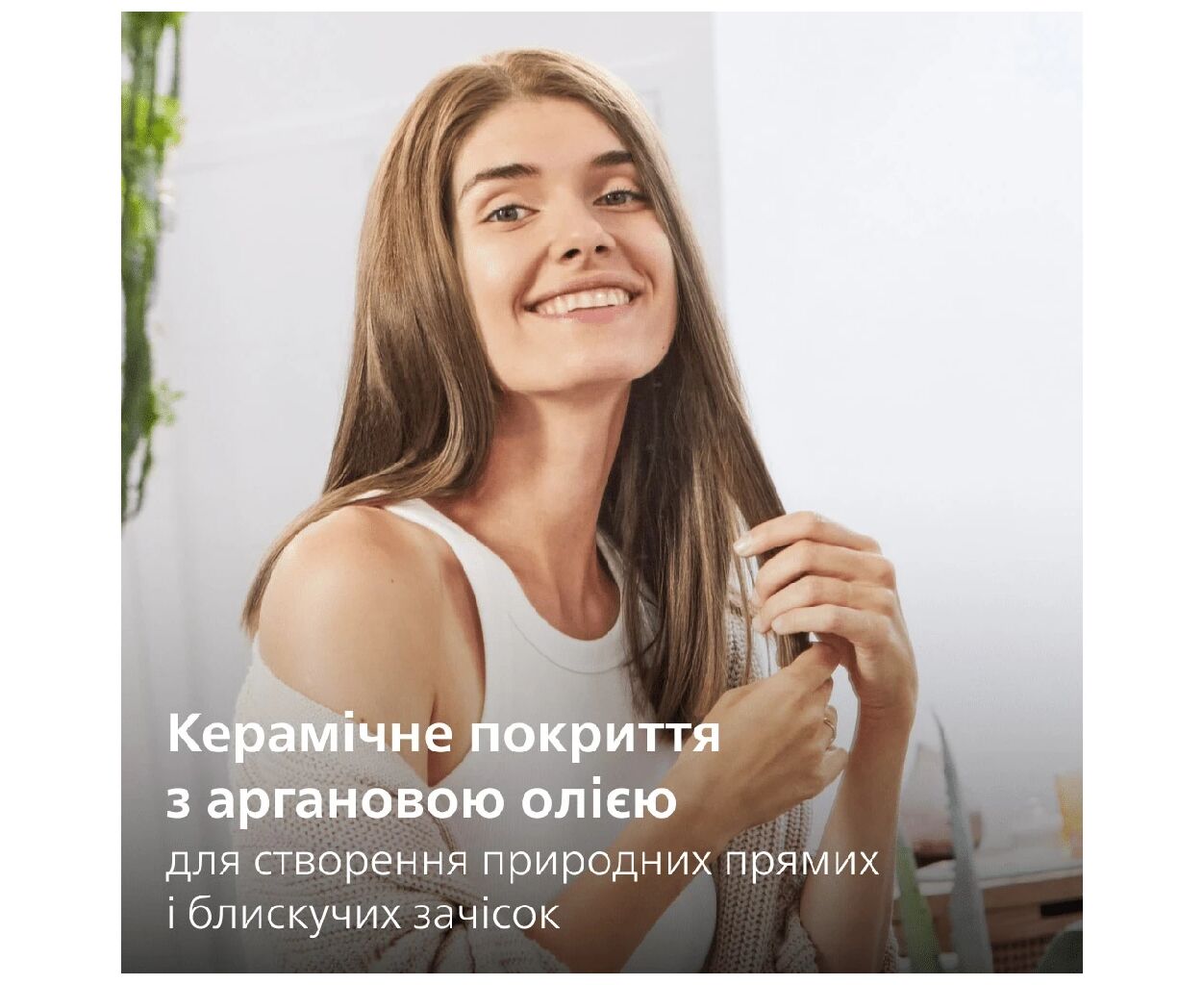 Щетинки с керамико-аргановым покрытием обеспечивают плавное скольжение по волосам, чтобы они выглядели естественно гладкими и блестящими.