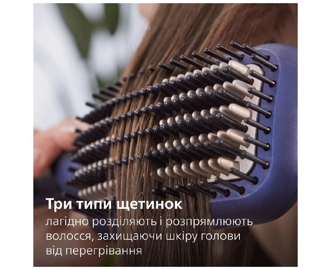 Тройные щетинки аккуратно распутывают и выпрямляют волосы, не обжигая кожу головы.