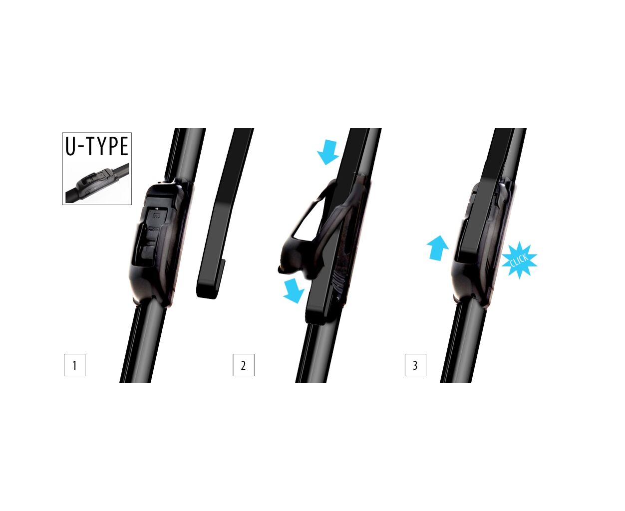 Универсальные бескаркасные дворники Oximo PREMIUM - качества с типом крепления U. Щетка имеет крепеж "2-в-1": типа U на 9 мм и 8 мм. Дворники (щетки стеклоочистителя) для окон имеют характерные крепления – крюки U-образной формы. Изготовлены из силиконово-резиновой смеси со встроенным спойлером. Крепления заслонок изготовлены полностью из металла с повышенным содержанием карбона, что в свою очередь является эффективной защитой от коррозии.