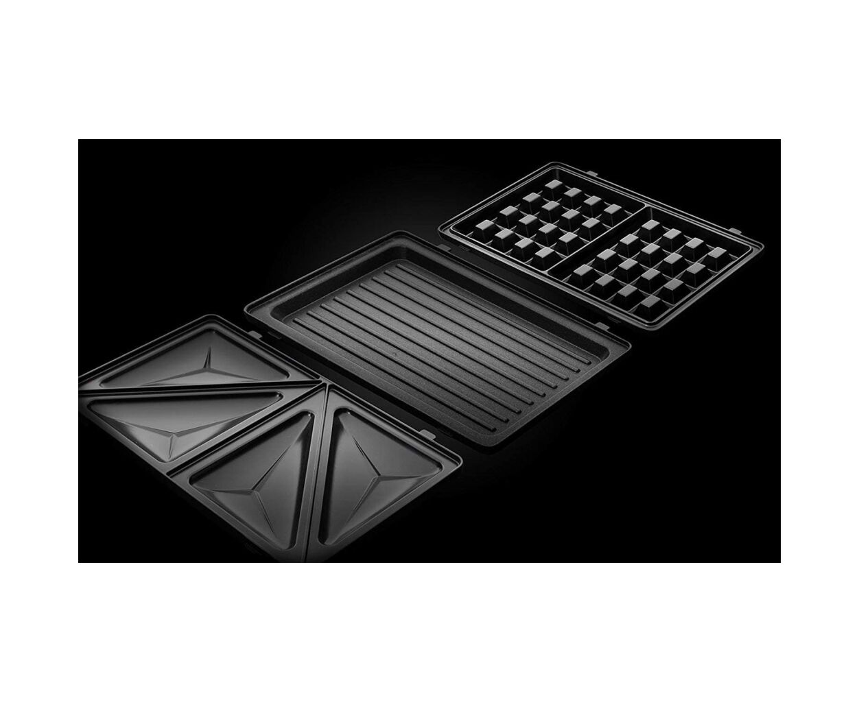 Этот универсальный прибор легко трансформируется в 3 прибора, будучи превосходным решением для быстрого приготовления вкусного и горячего завтрака или ланча. С ее помощью Вы можете с легкостью готовить хрустящие панини, вкуснейшие бутерброды или выпекать ароматные бельгийские вафли.