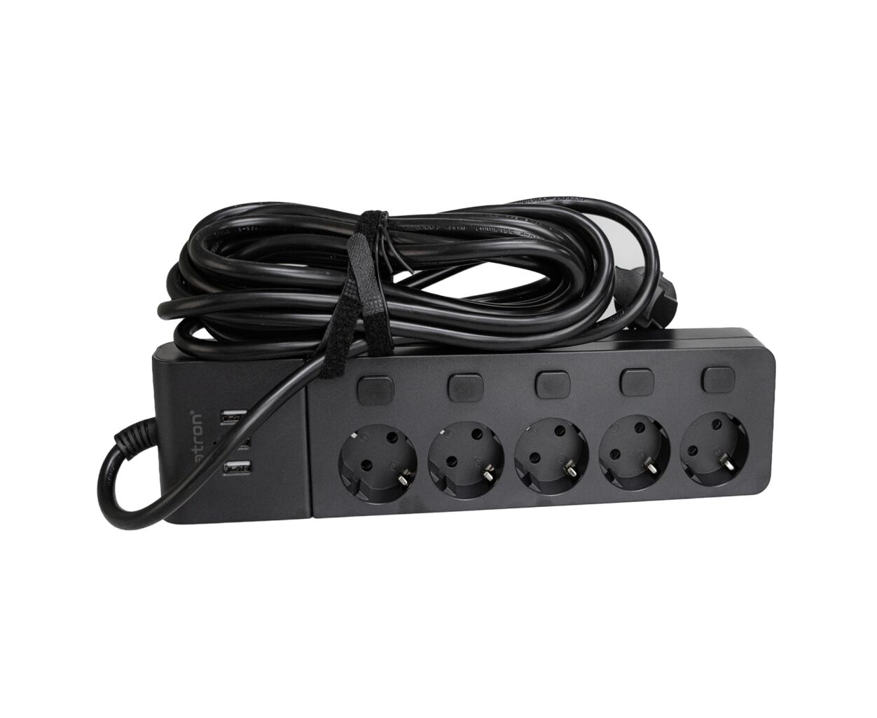 Количество розеток - 5, Длина кабеля - 5 м, Цвет - черный