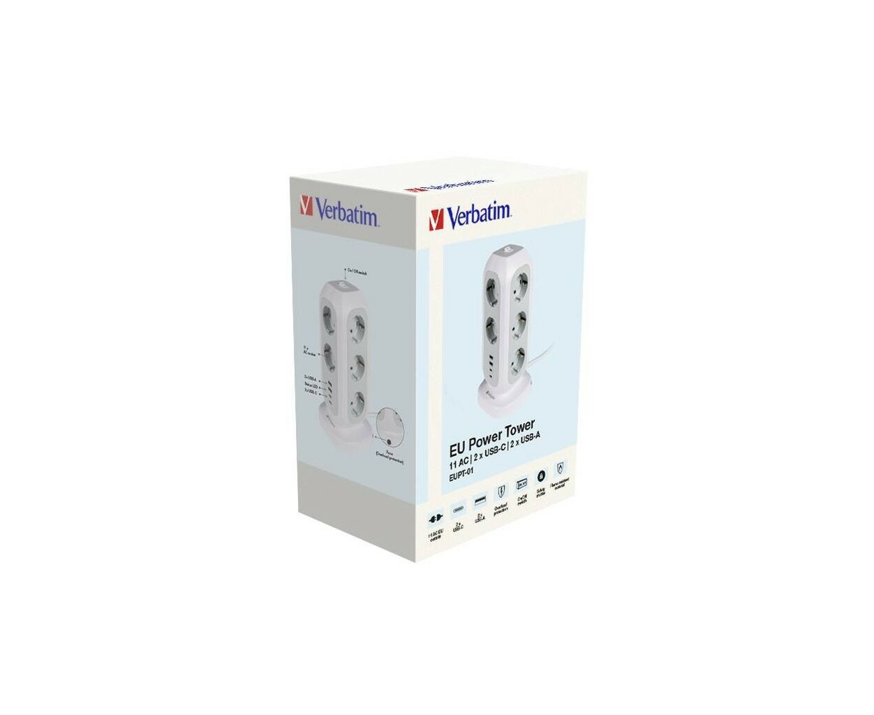 Характеристики Сетевой фильтр питания Verbatim 11 розеток, 2 x USB-C та 2 x USB-A (49547)