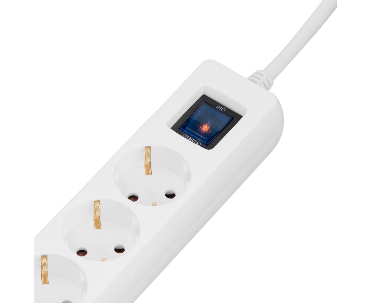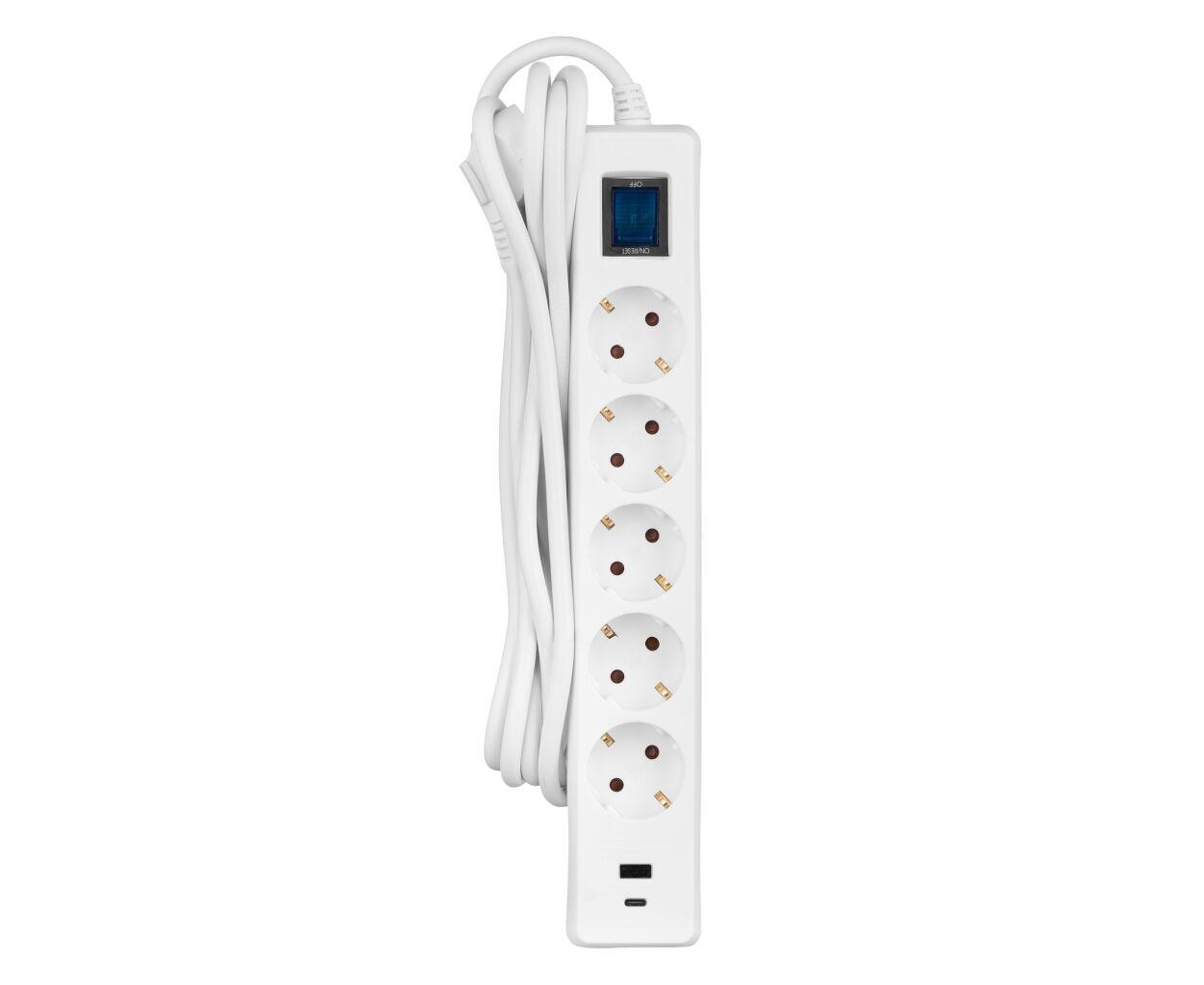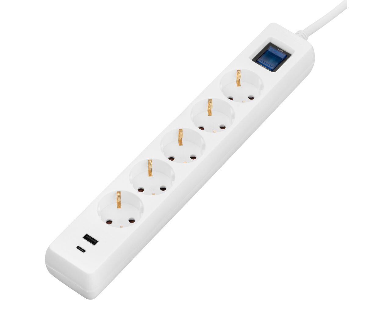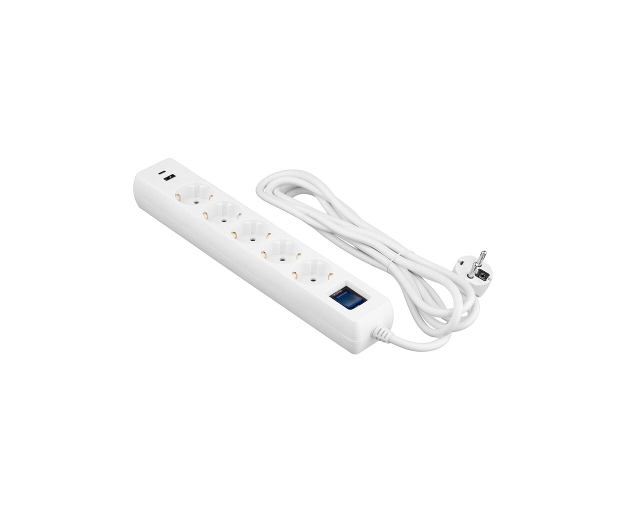 Количество розеток - 5, Длина кабеля - 3 м, контакт заземления, с общим выключателем, с USB, Защита - от перегрузки, Цвет - белый
